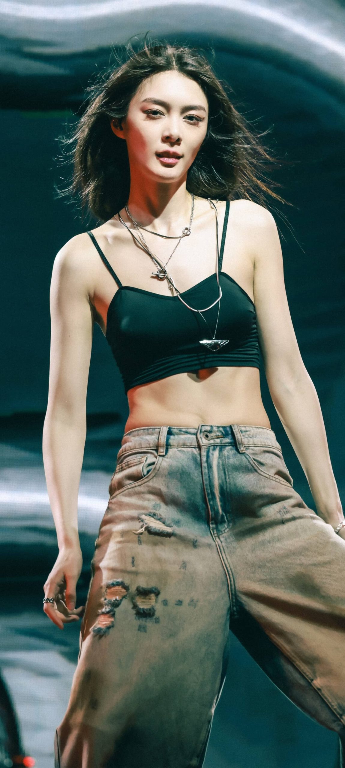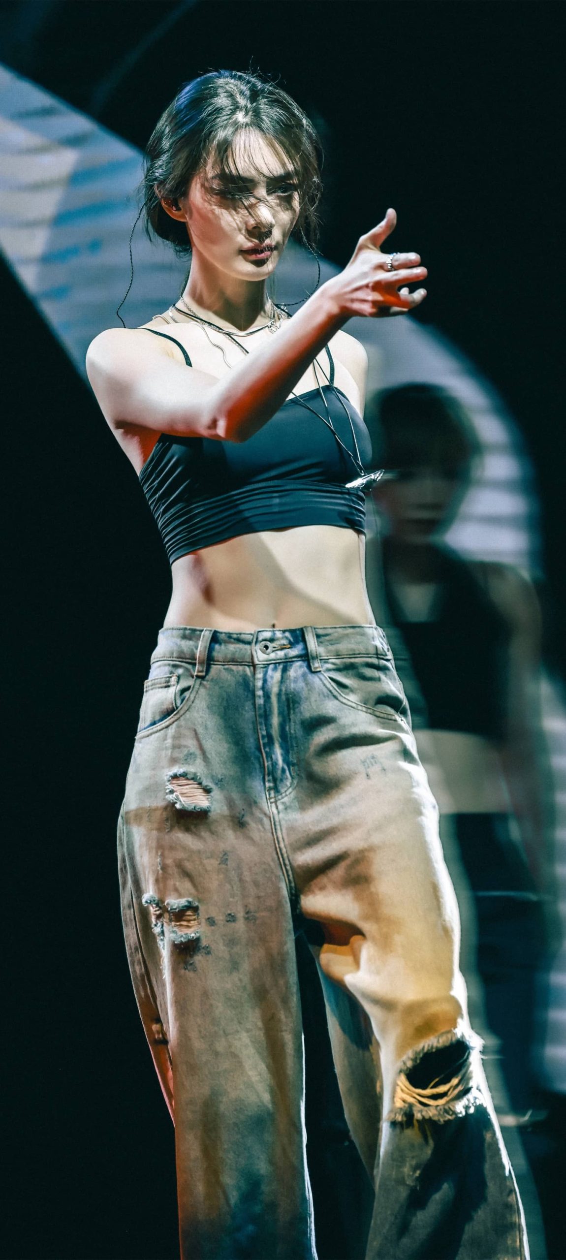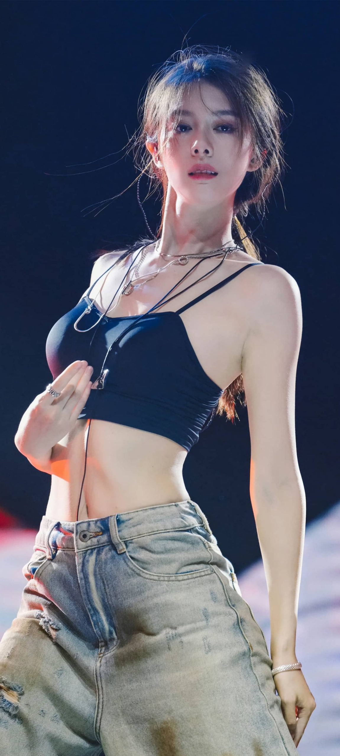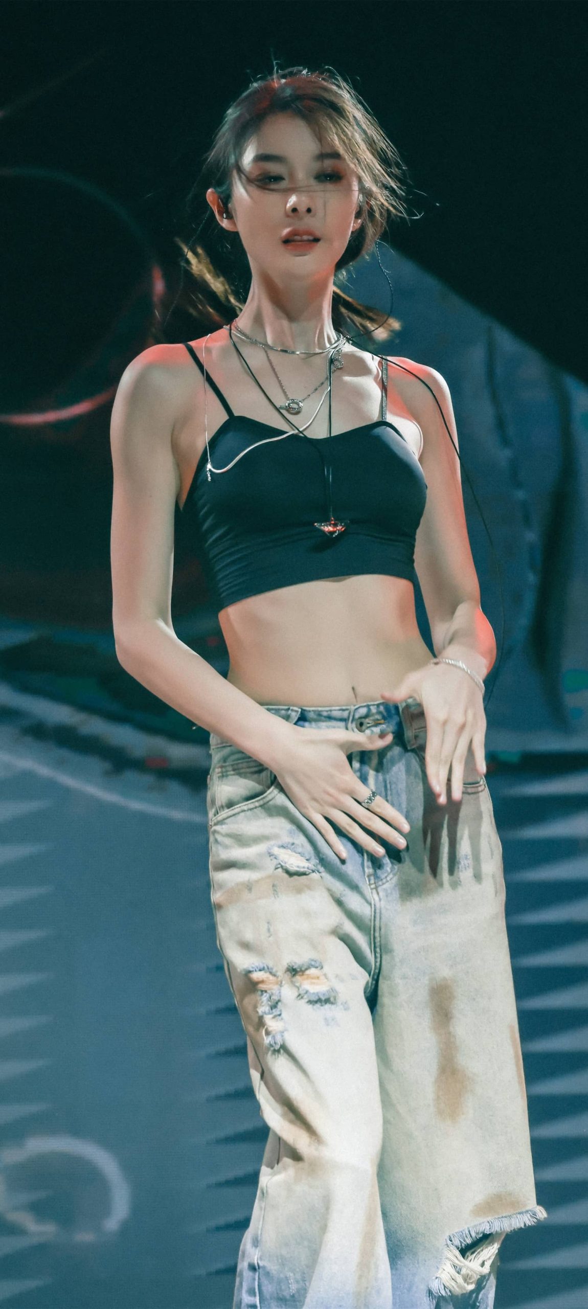 傅菁魅力舞台,吊带牛仔活力十足