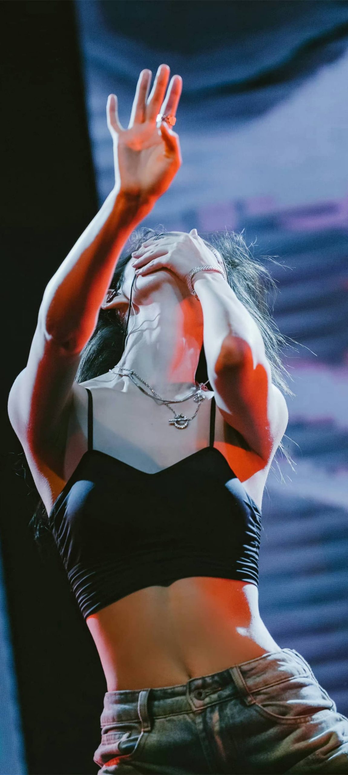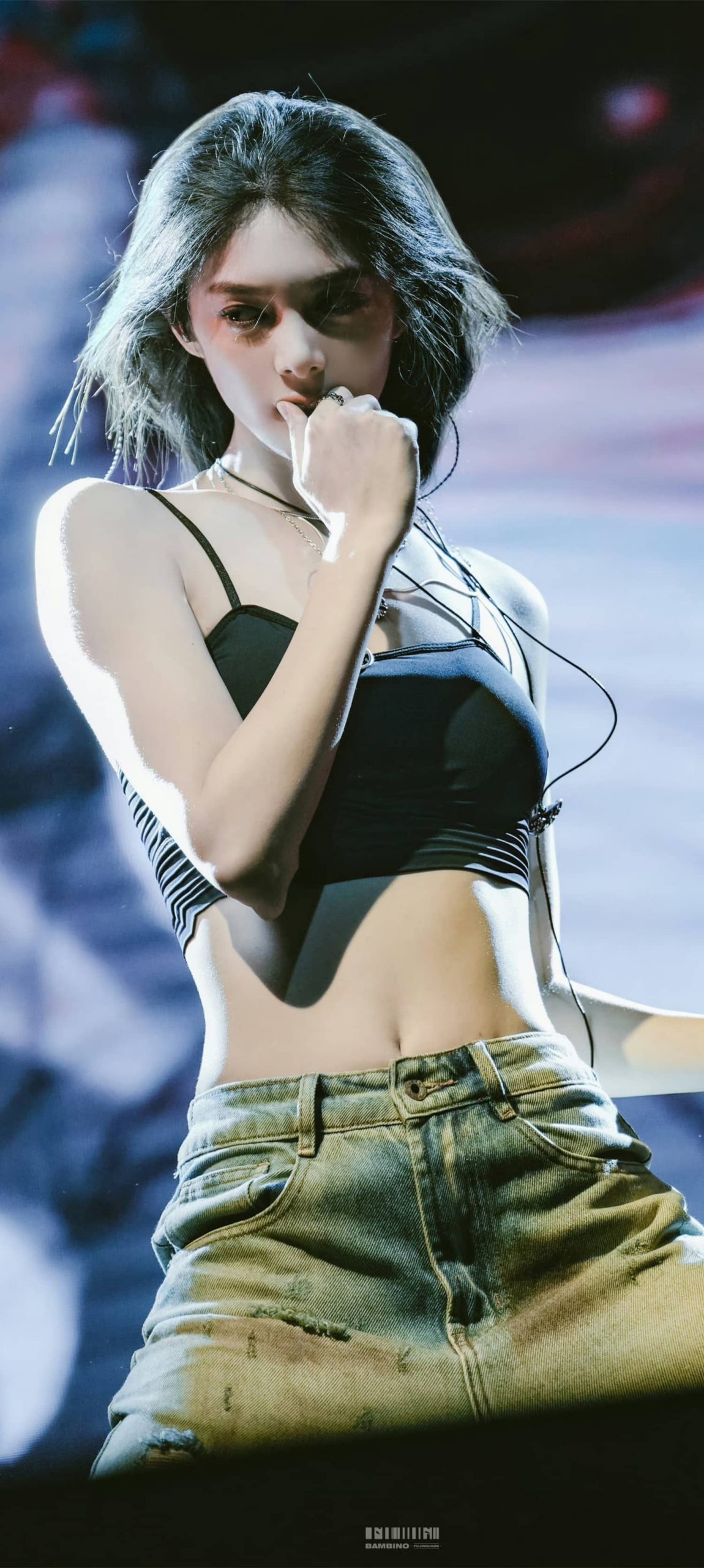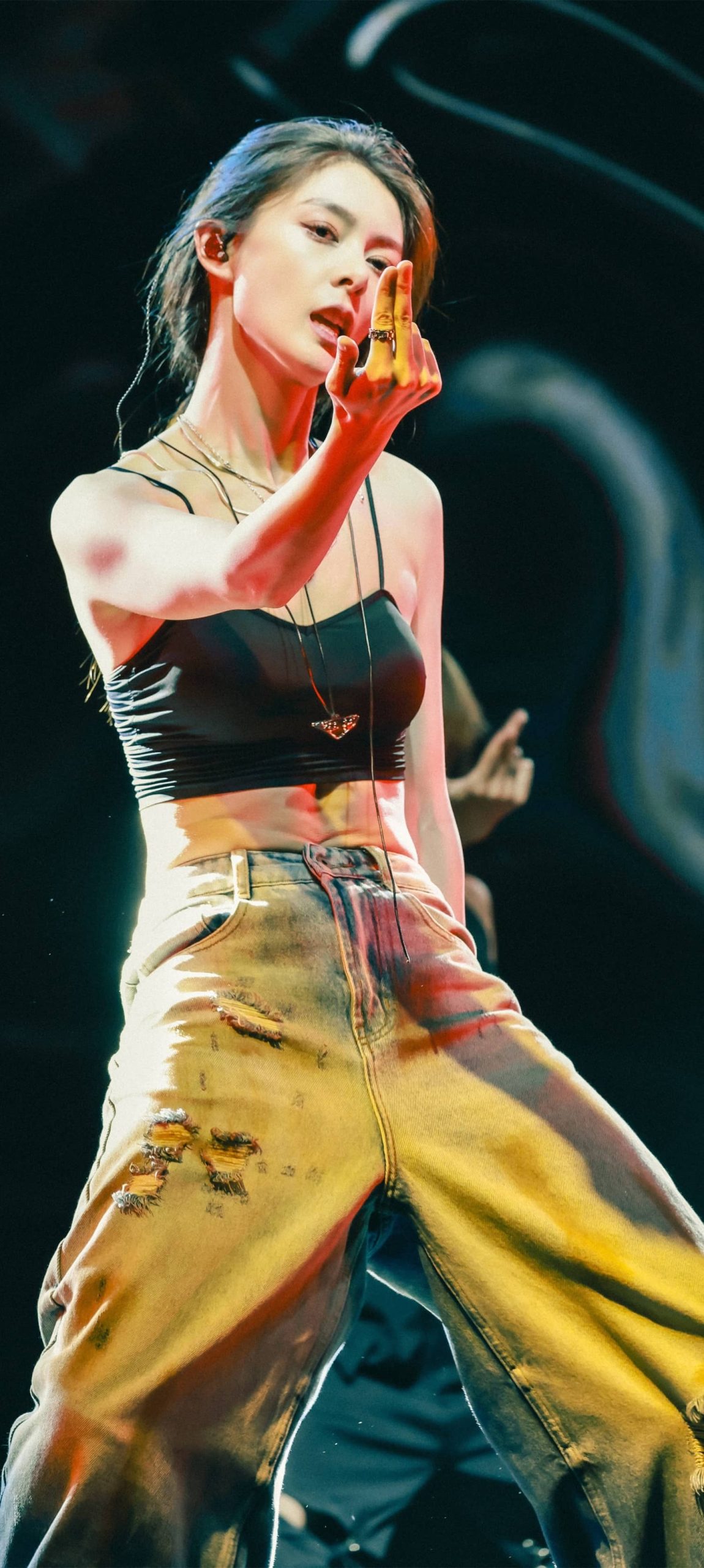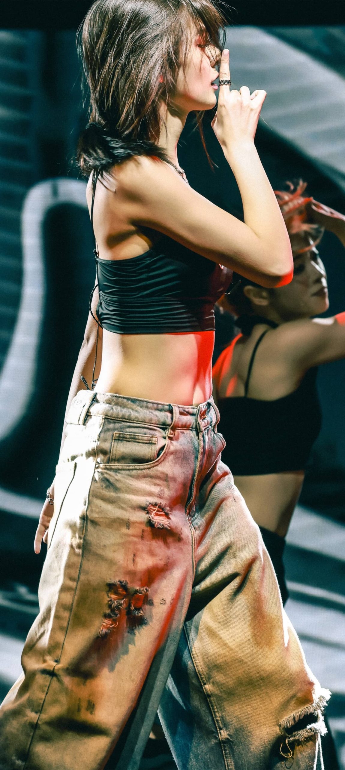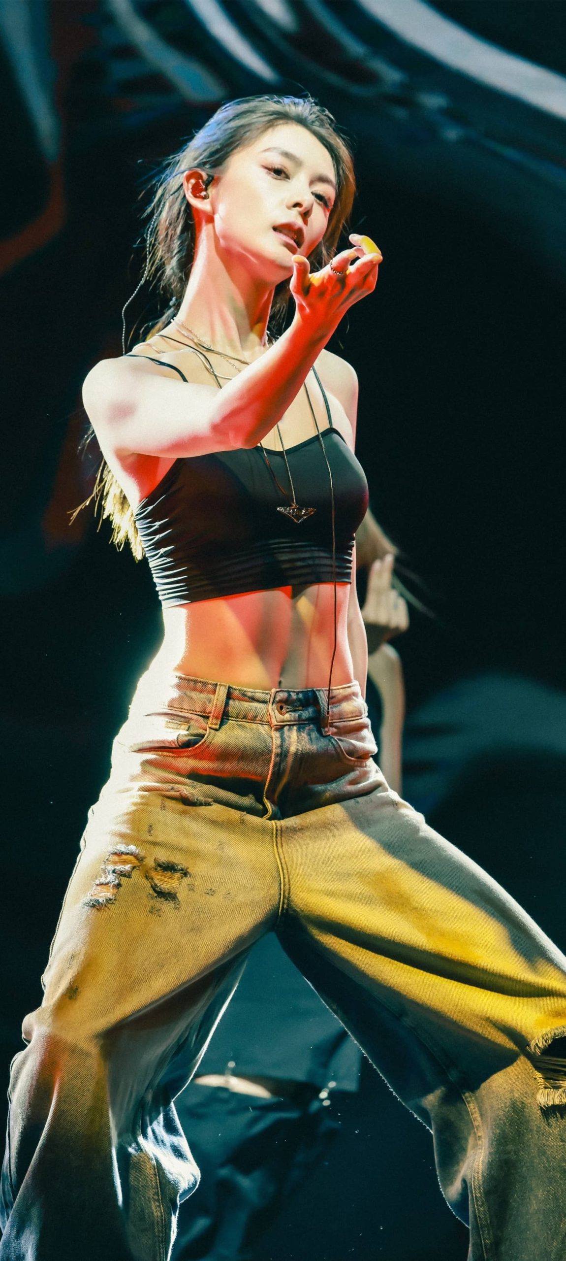 傅菁魅力舞台,吊带牛仔活力十足