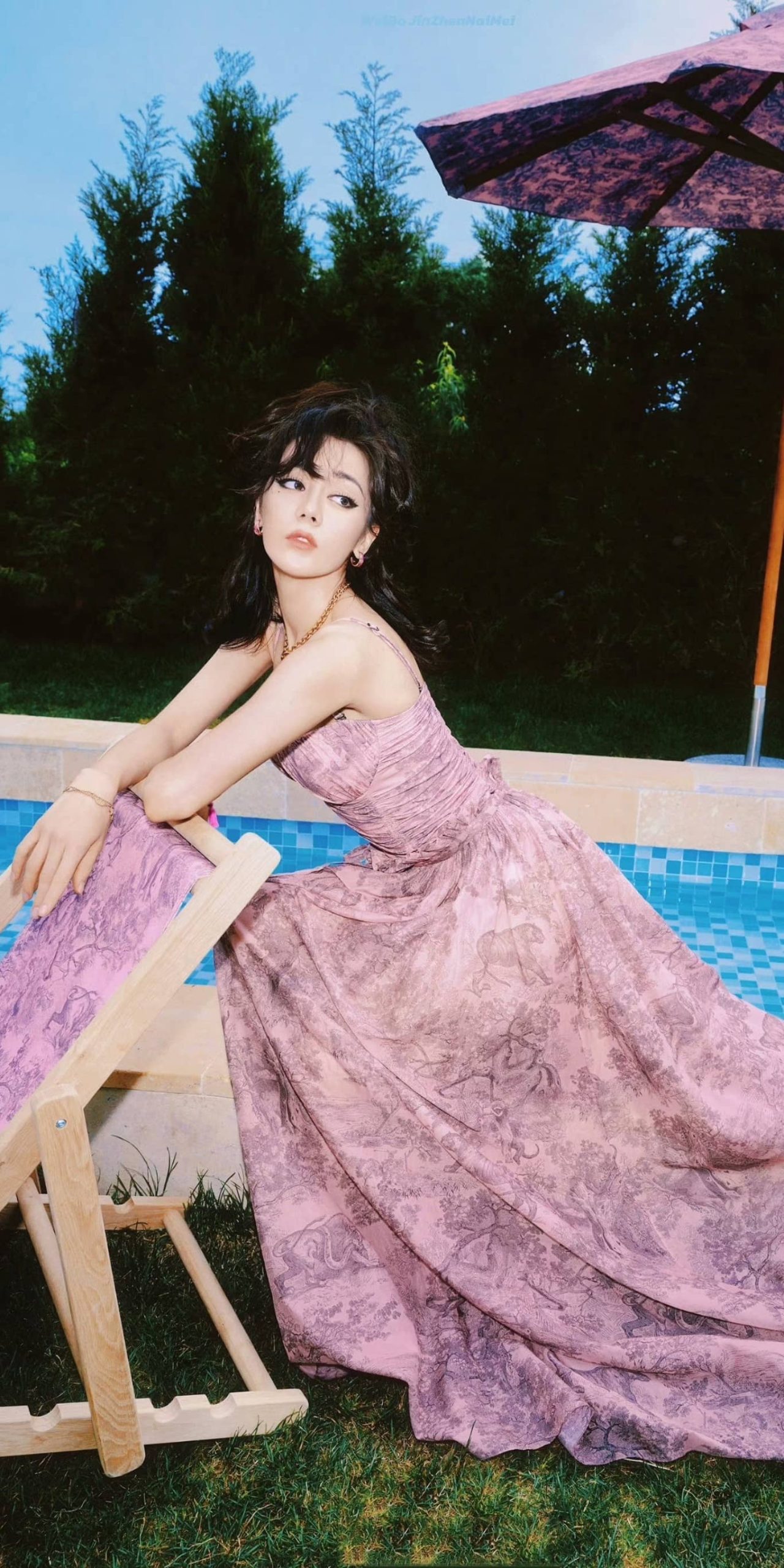 迪丽热巴浓颜大片,复古长裙又仙又美