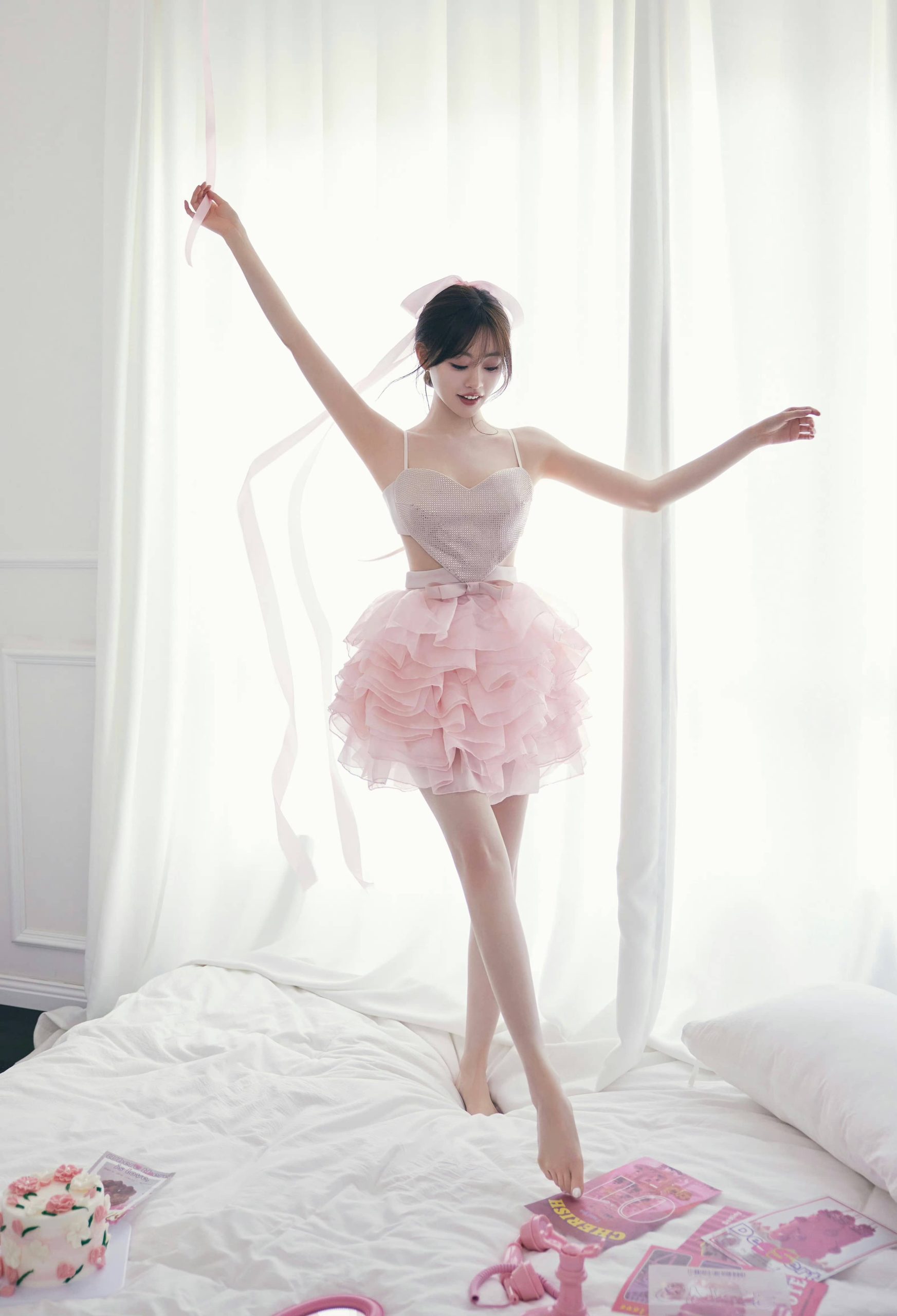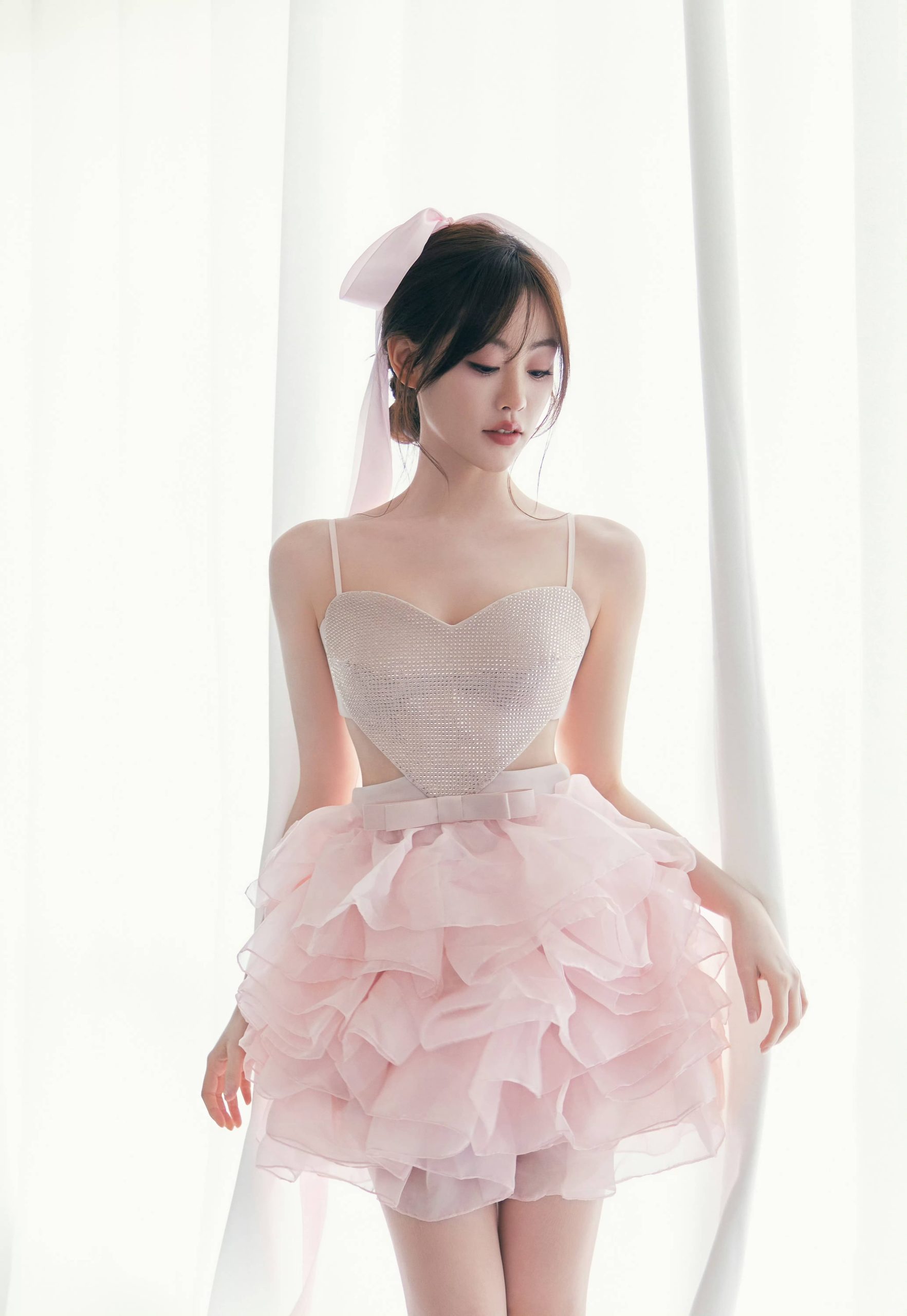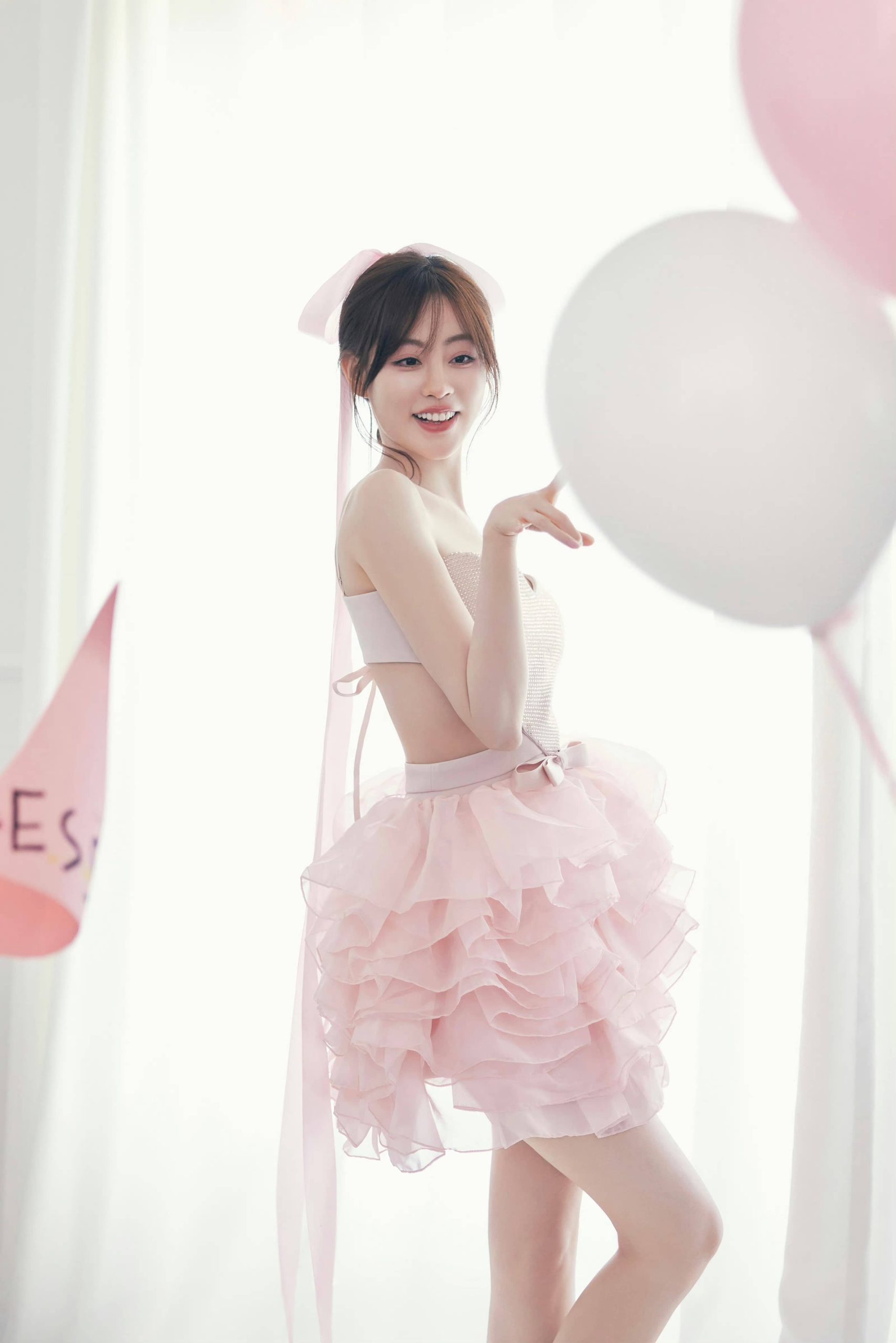 祝绪丹,穿吊带小粉裙,真是太有仙气了