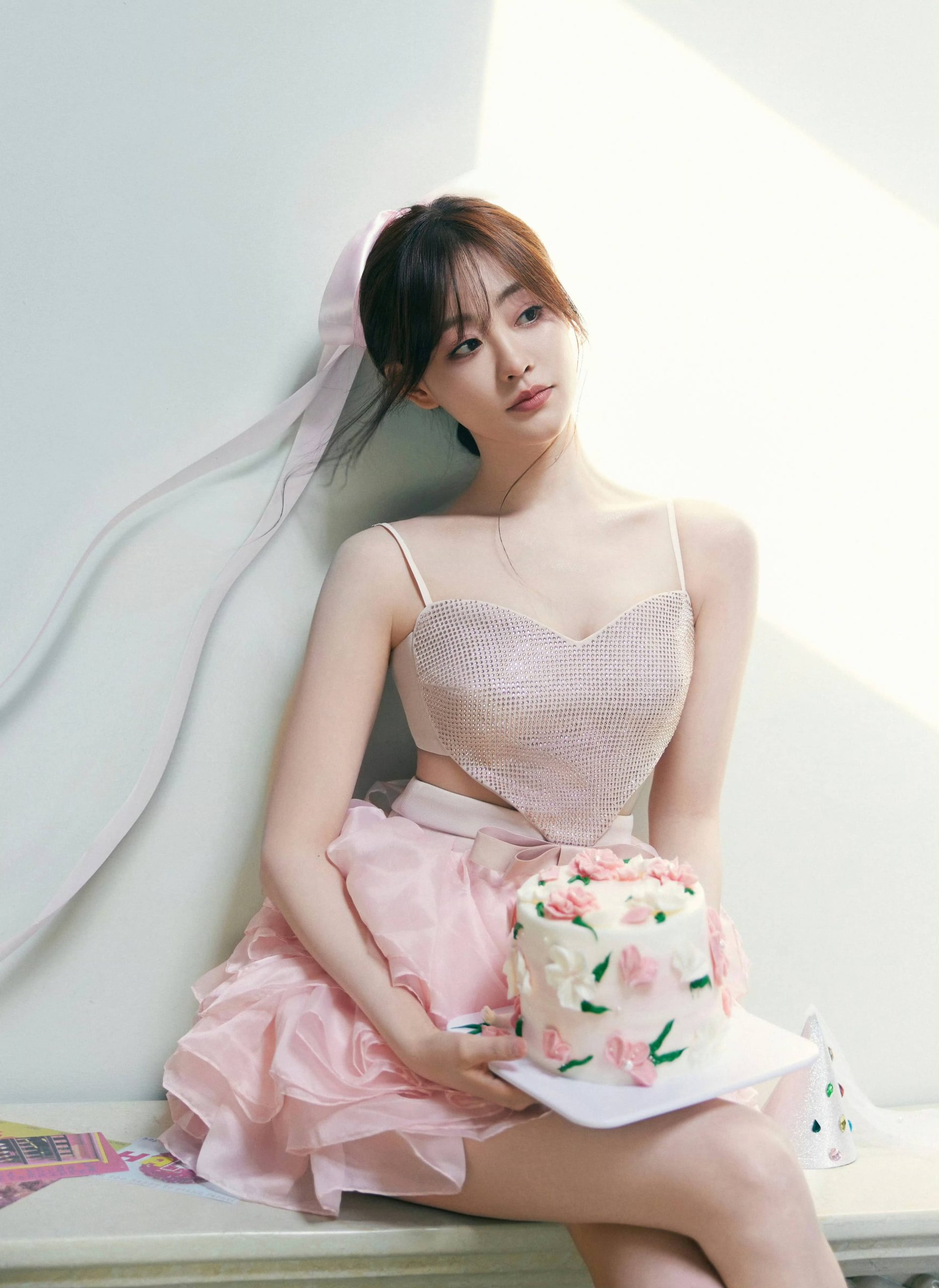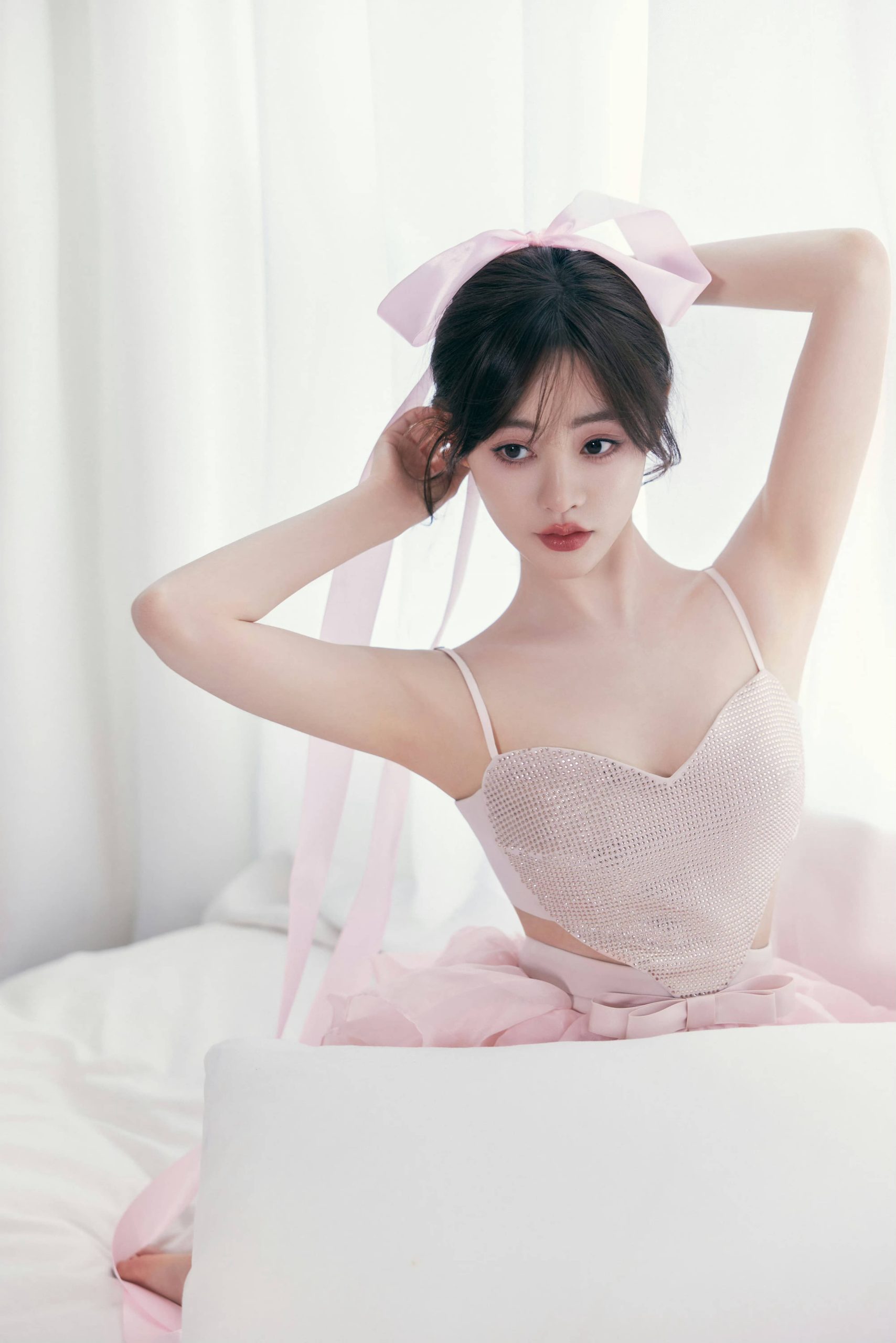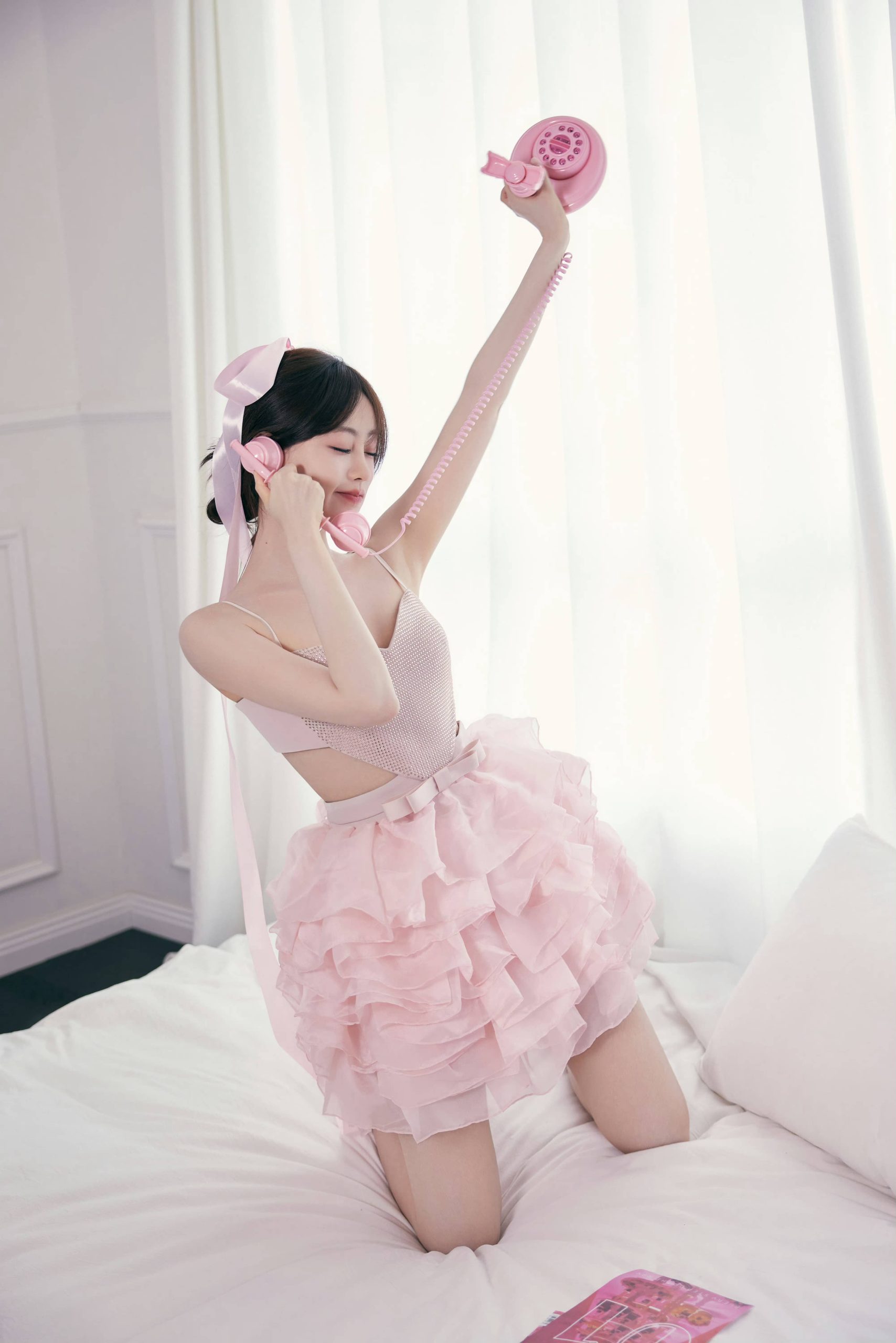 祝绪丹,穿吊带小粉裙,真是太有仙气了