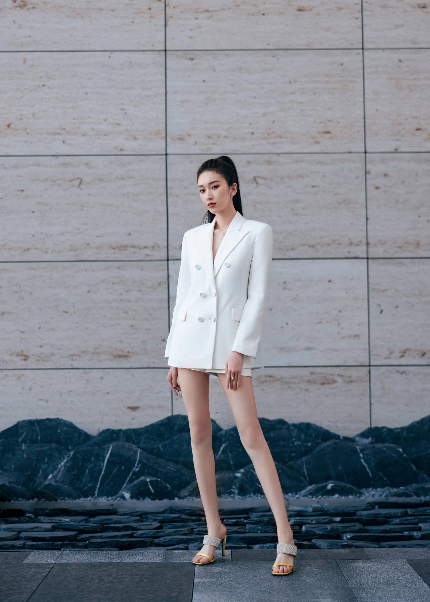 刘令姿,白色西装裙大长腿,确实亮眼