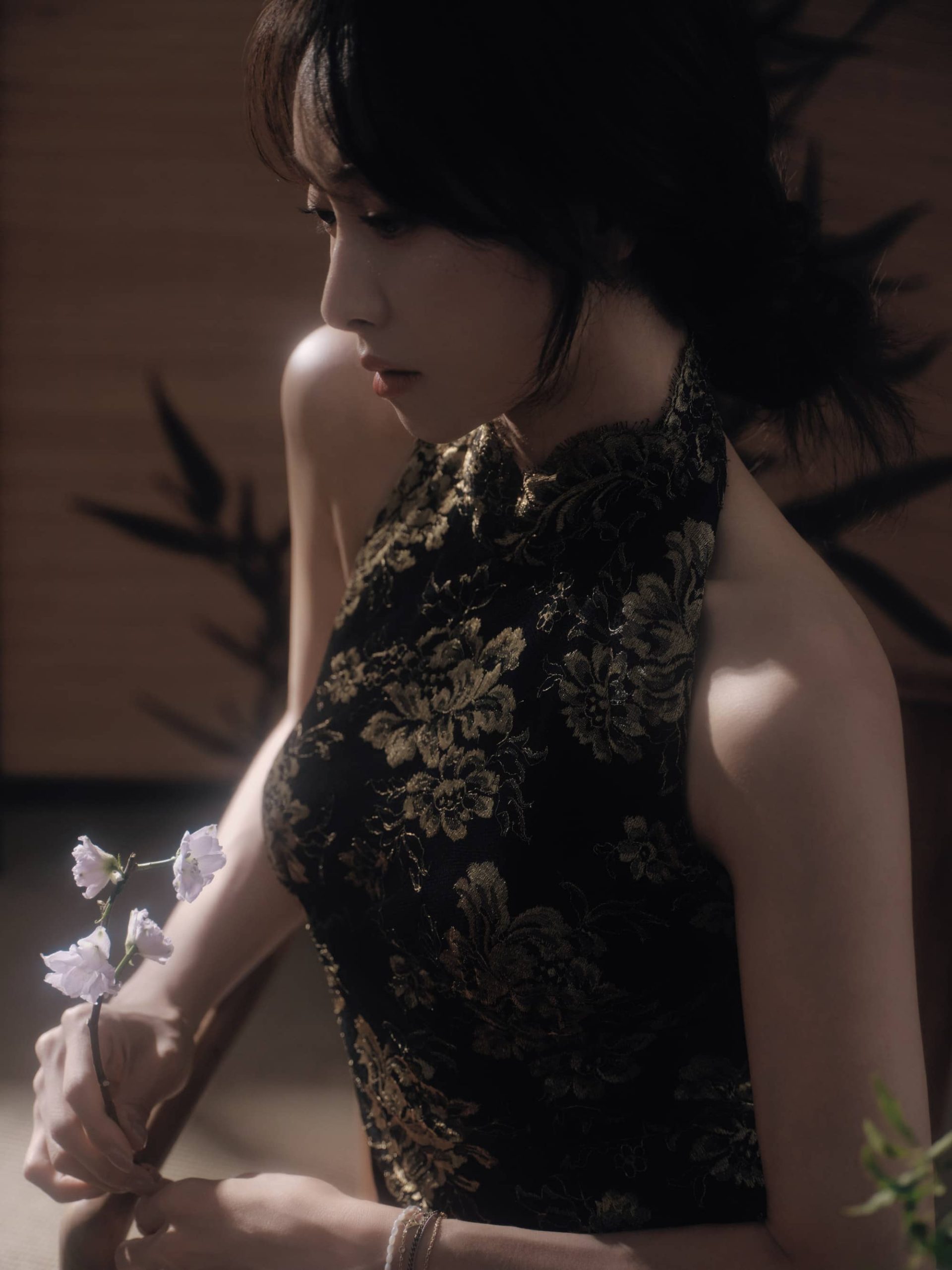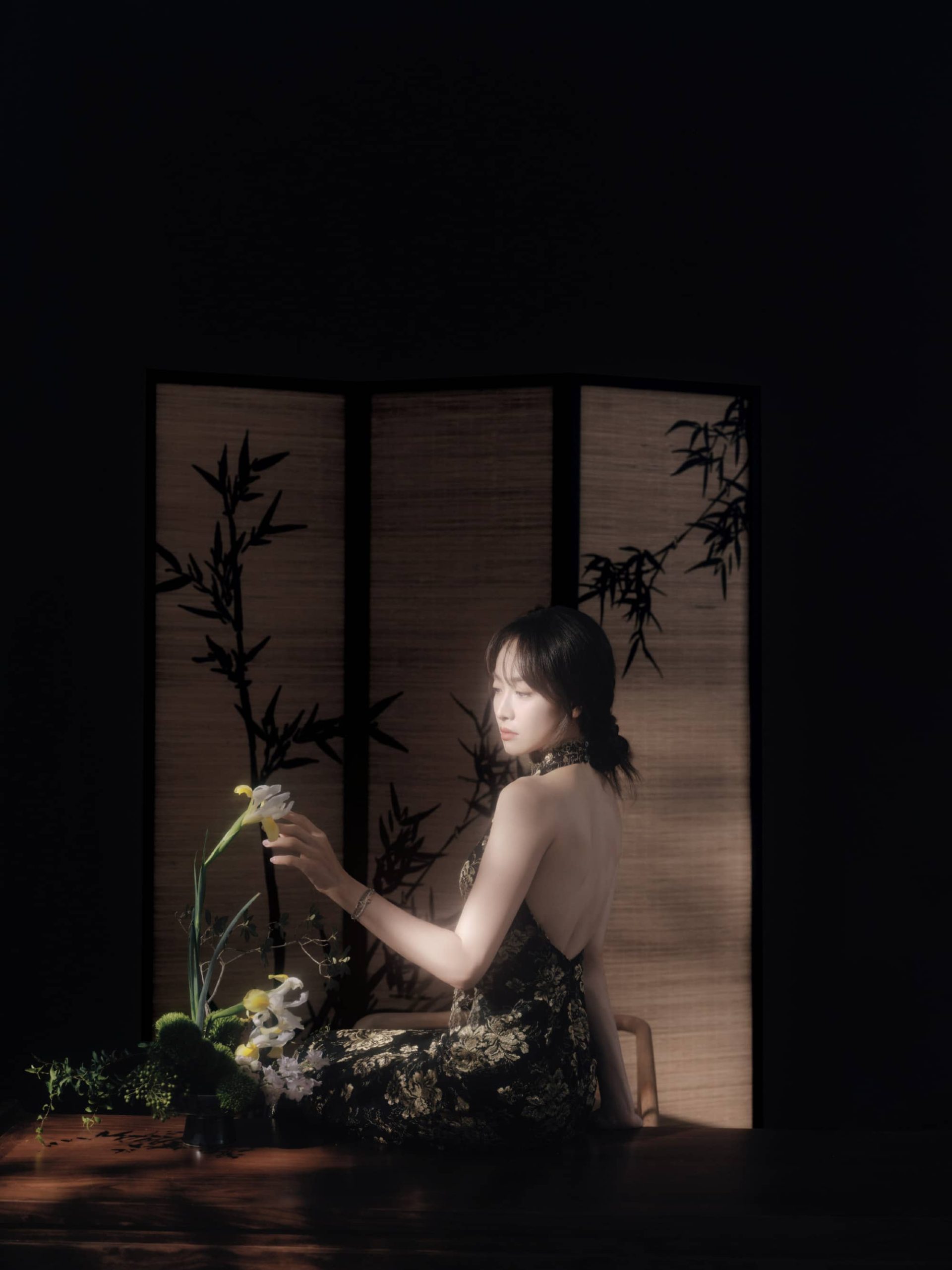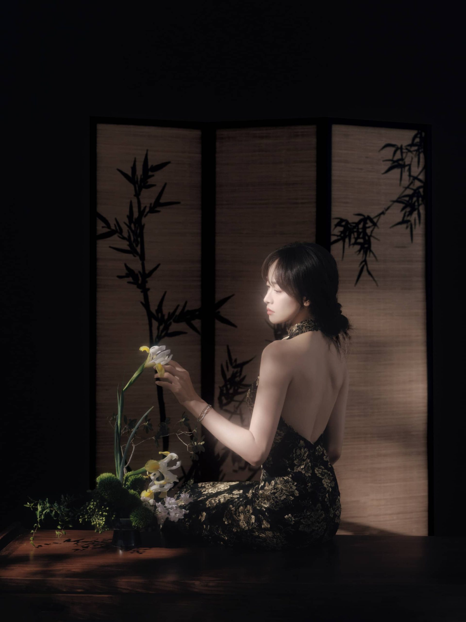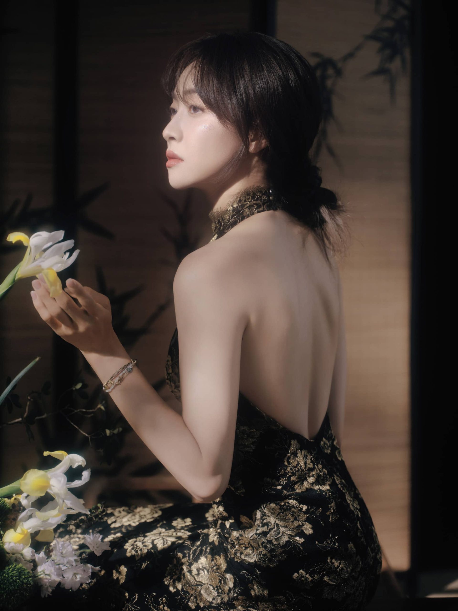 宋茜露背旗袍,澄月凌空,舒展怡人