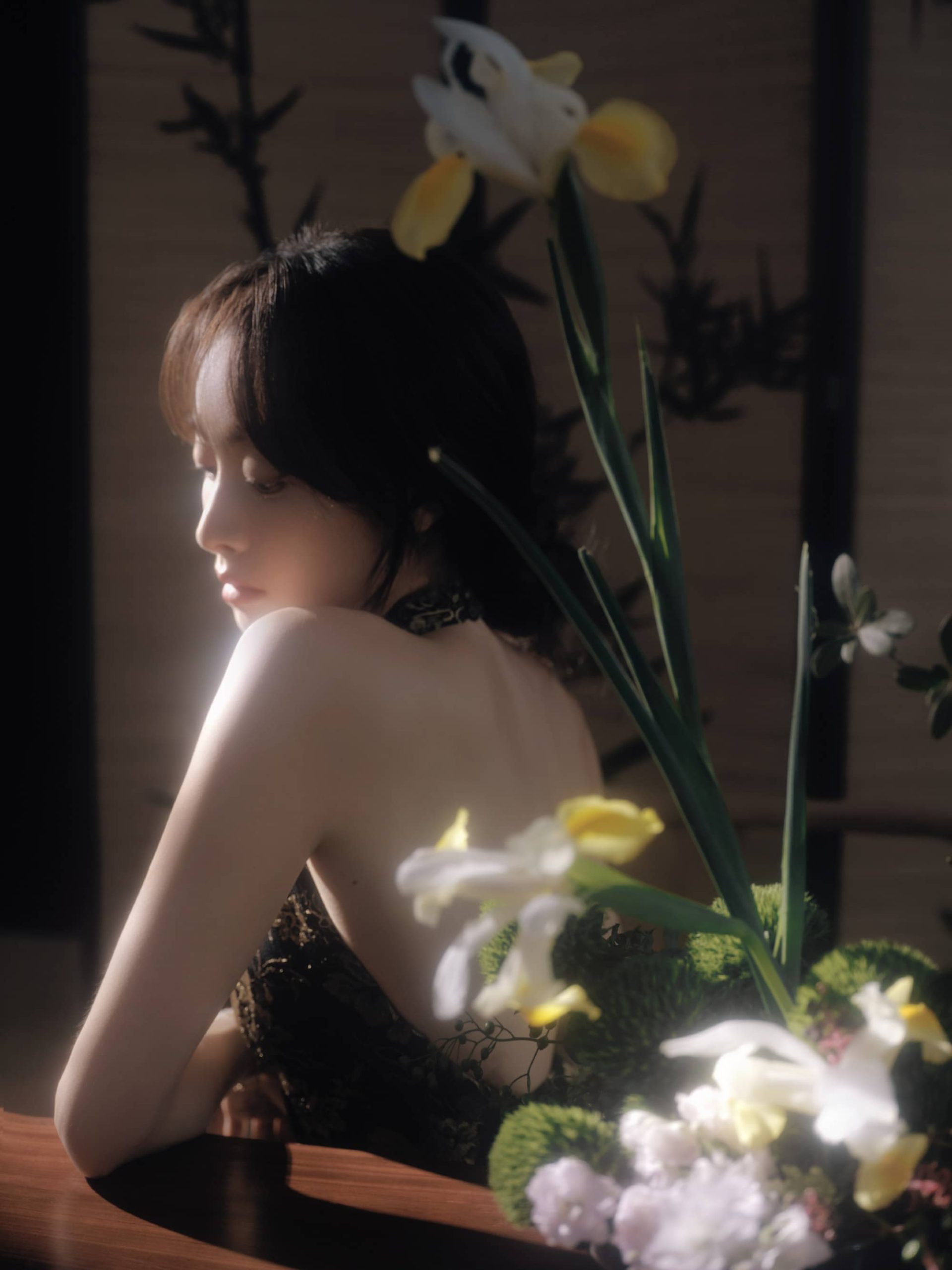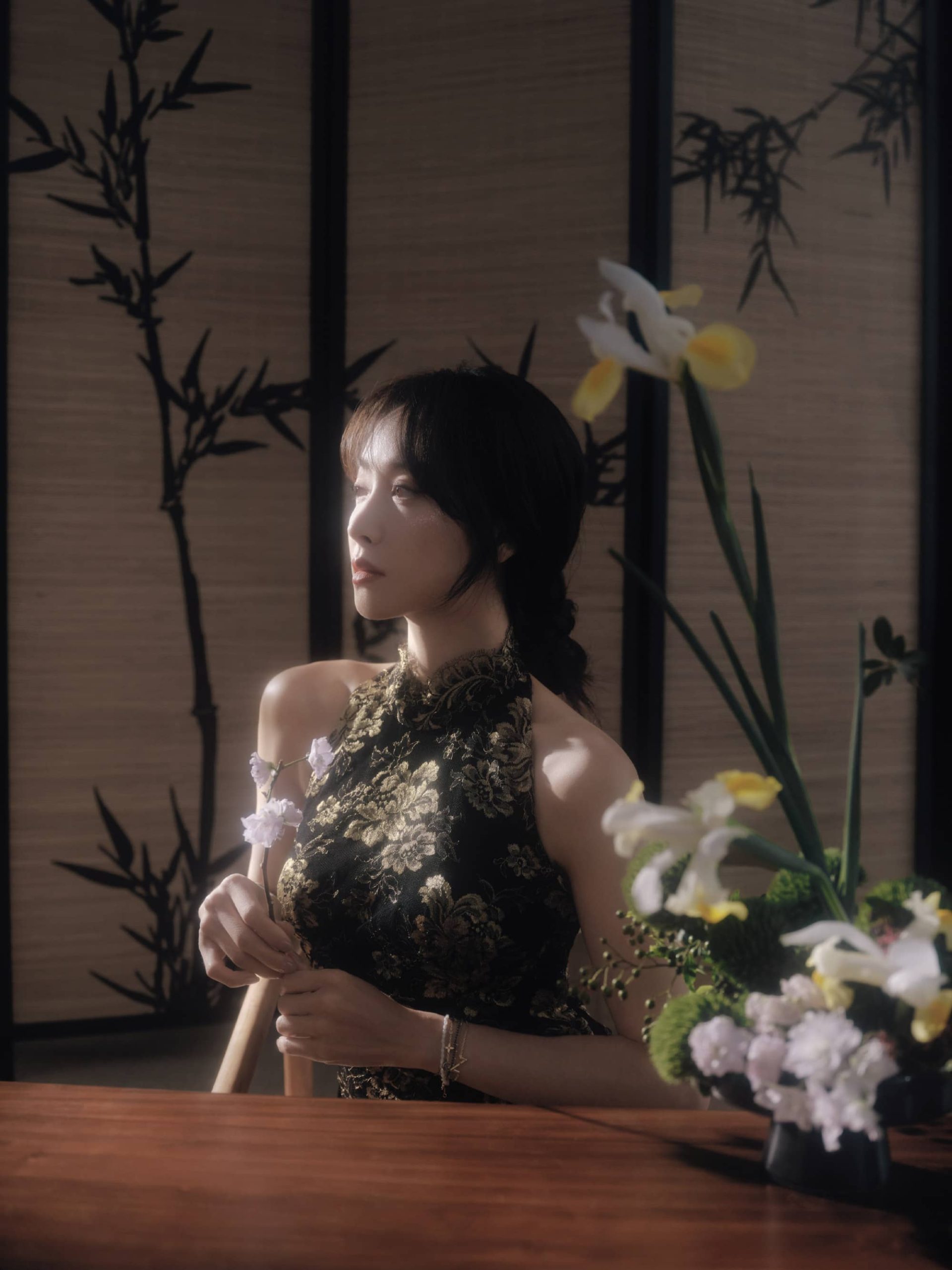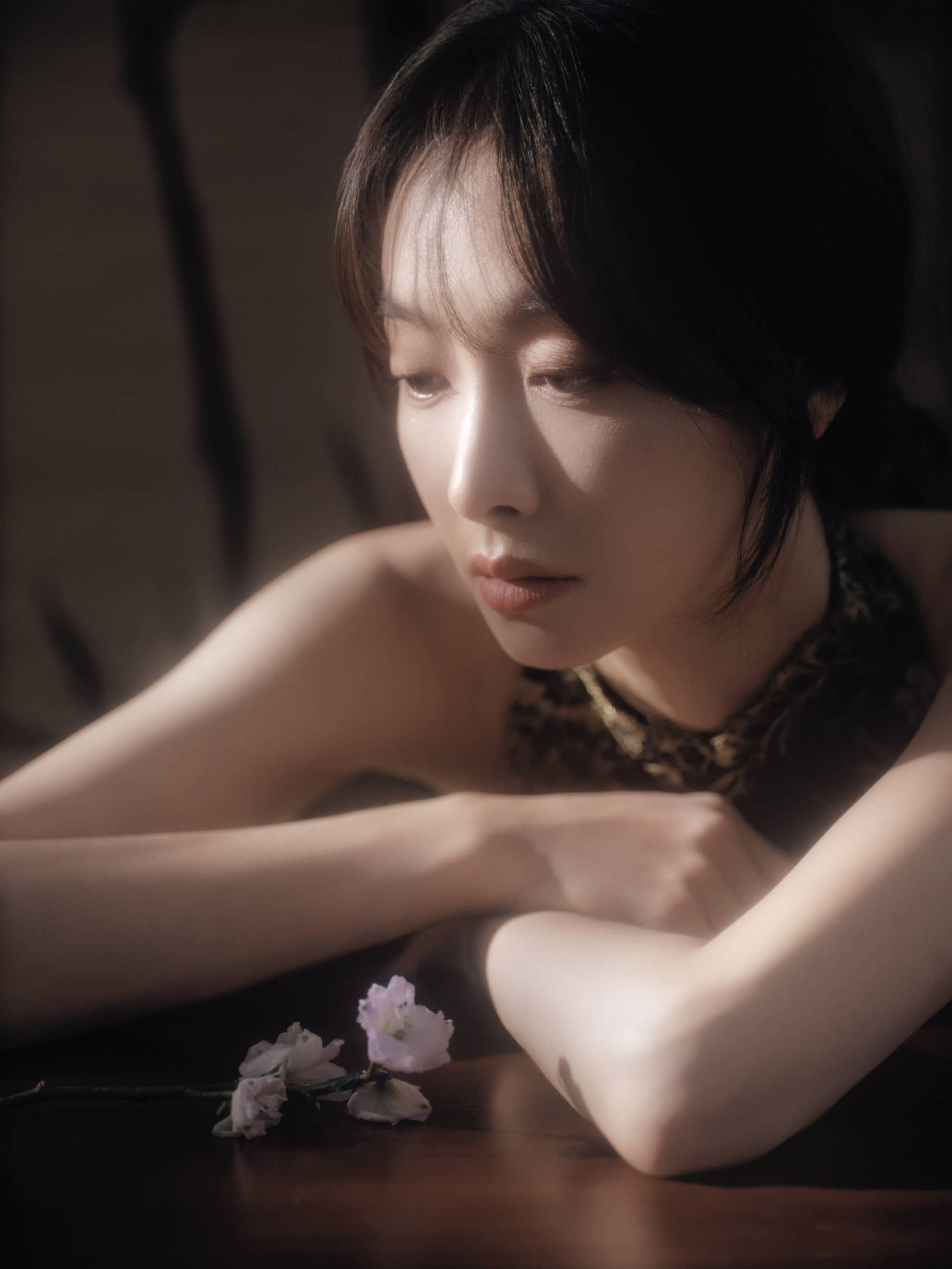 宋茜露背旗袍,澄月凌空,舒展怡人