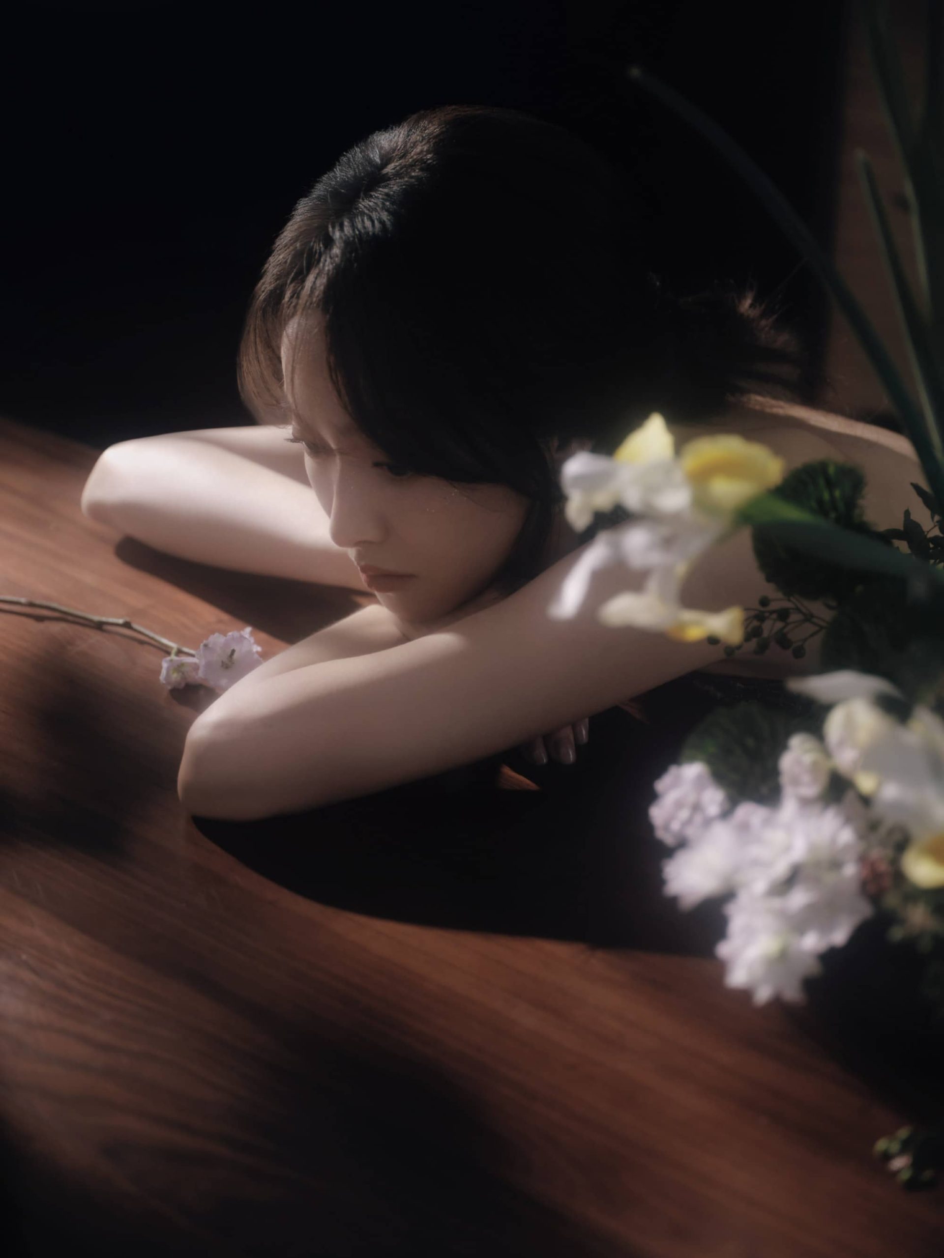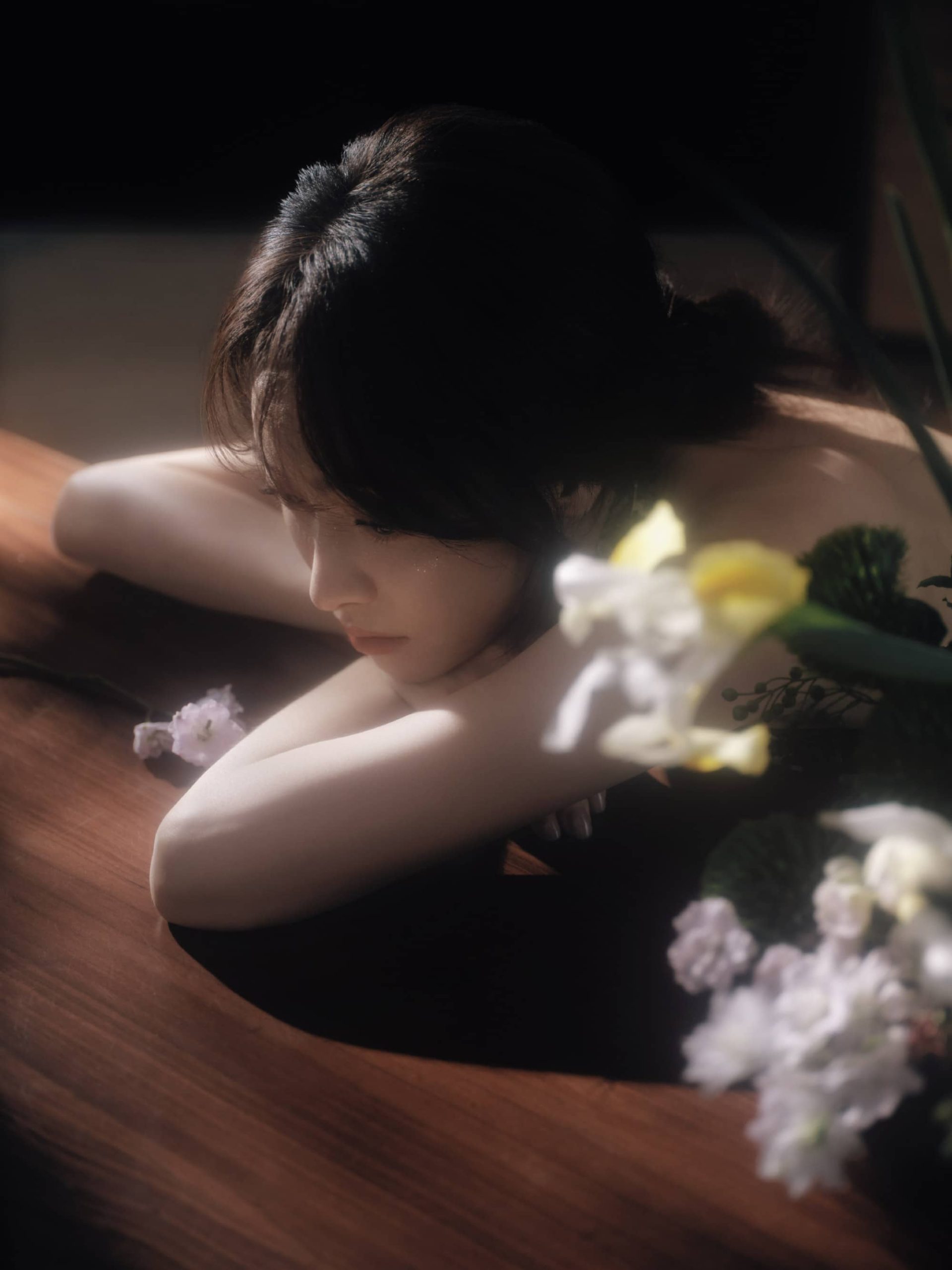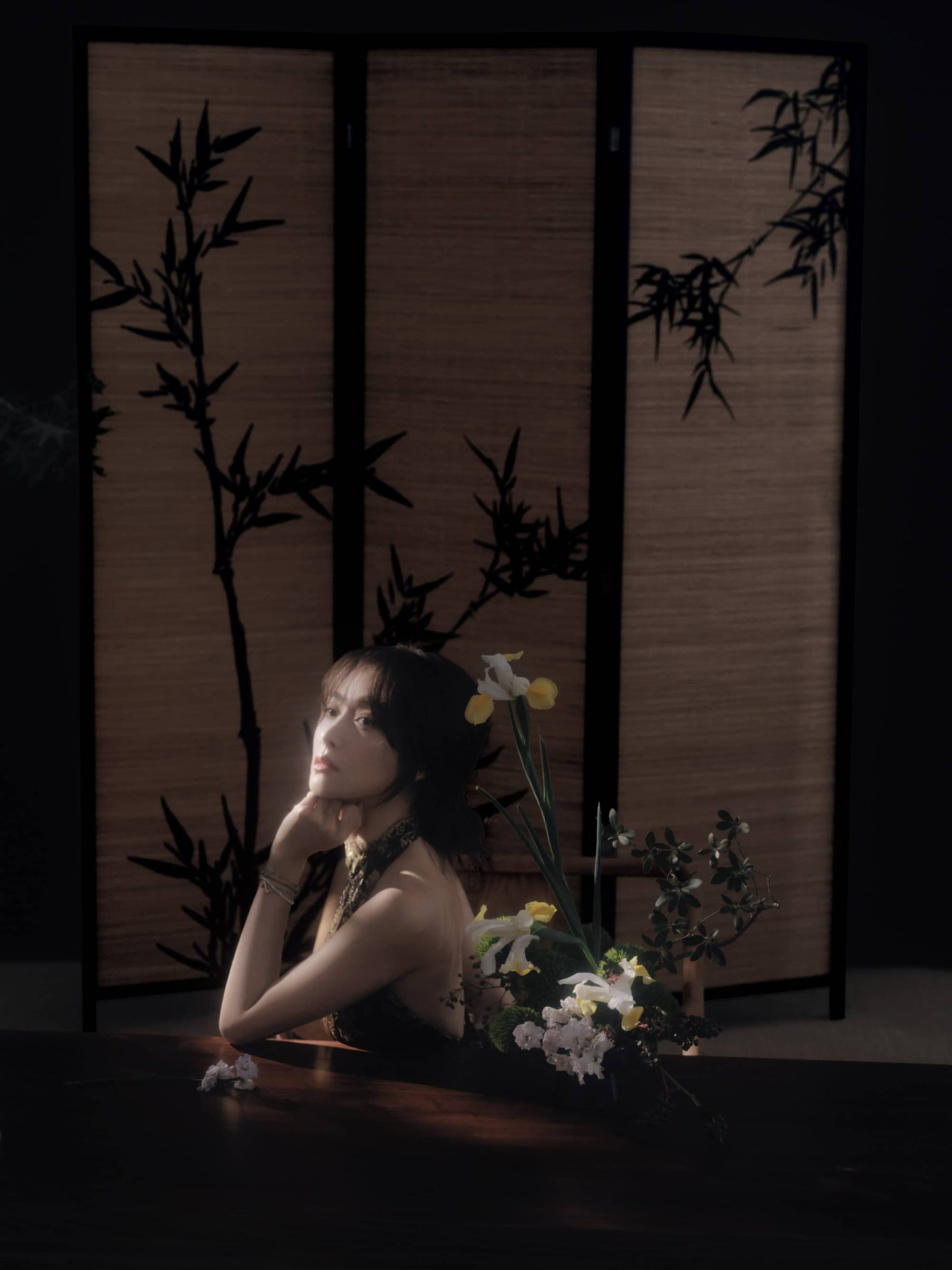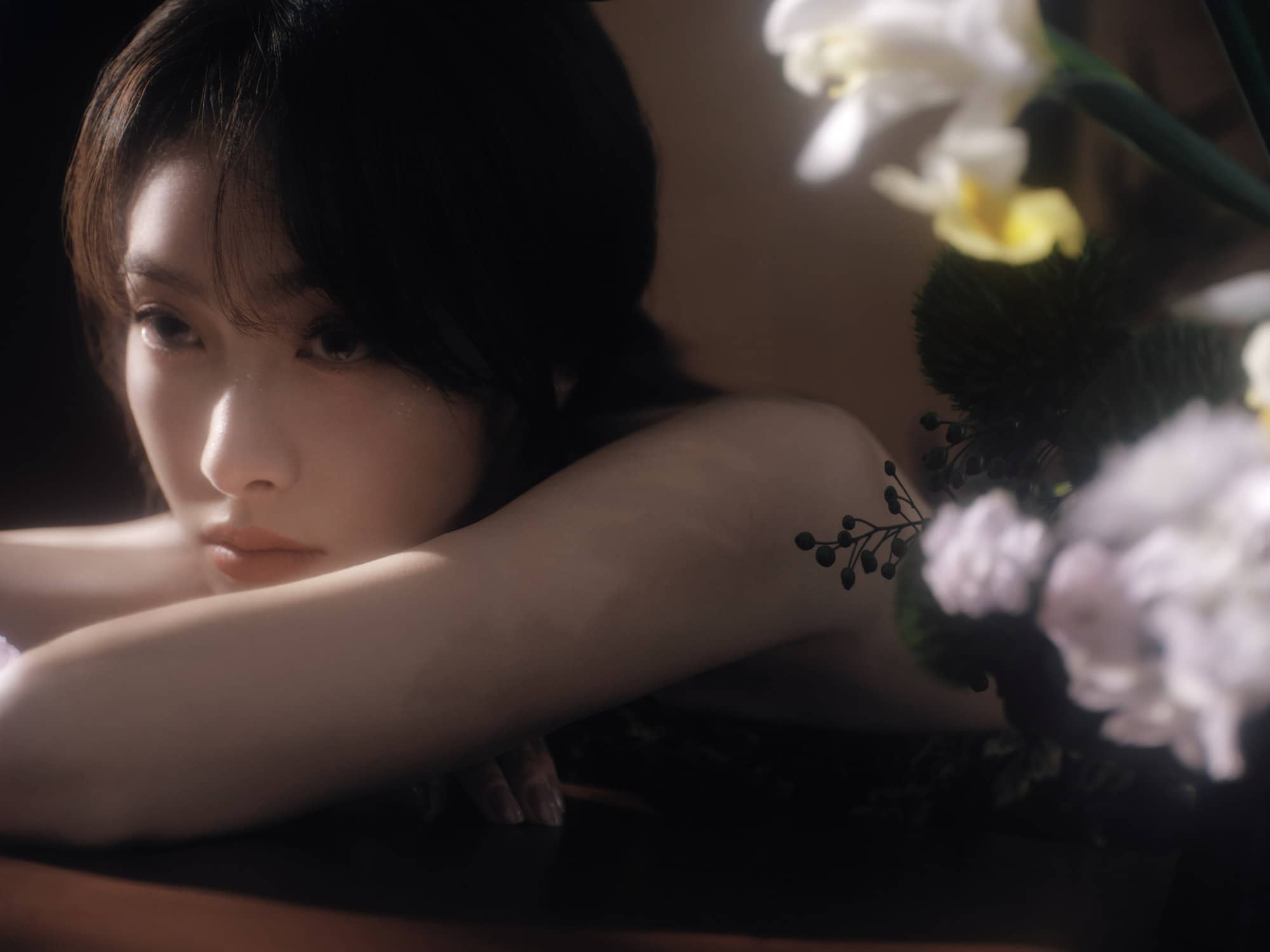 宋茜露背旗袍,澄月凌空,舒展怡人