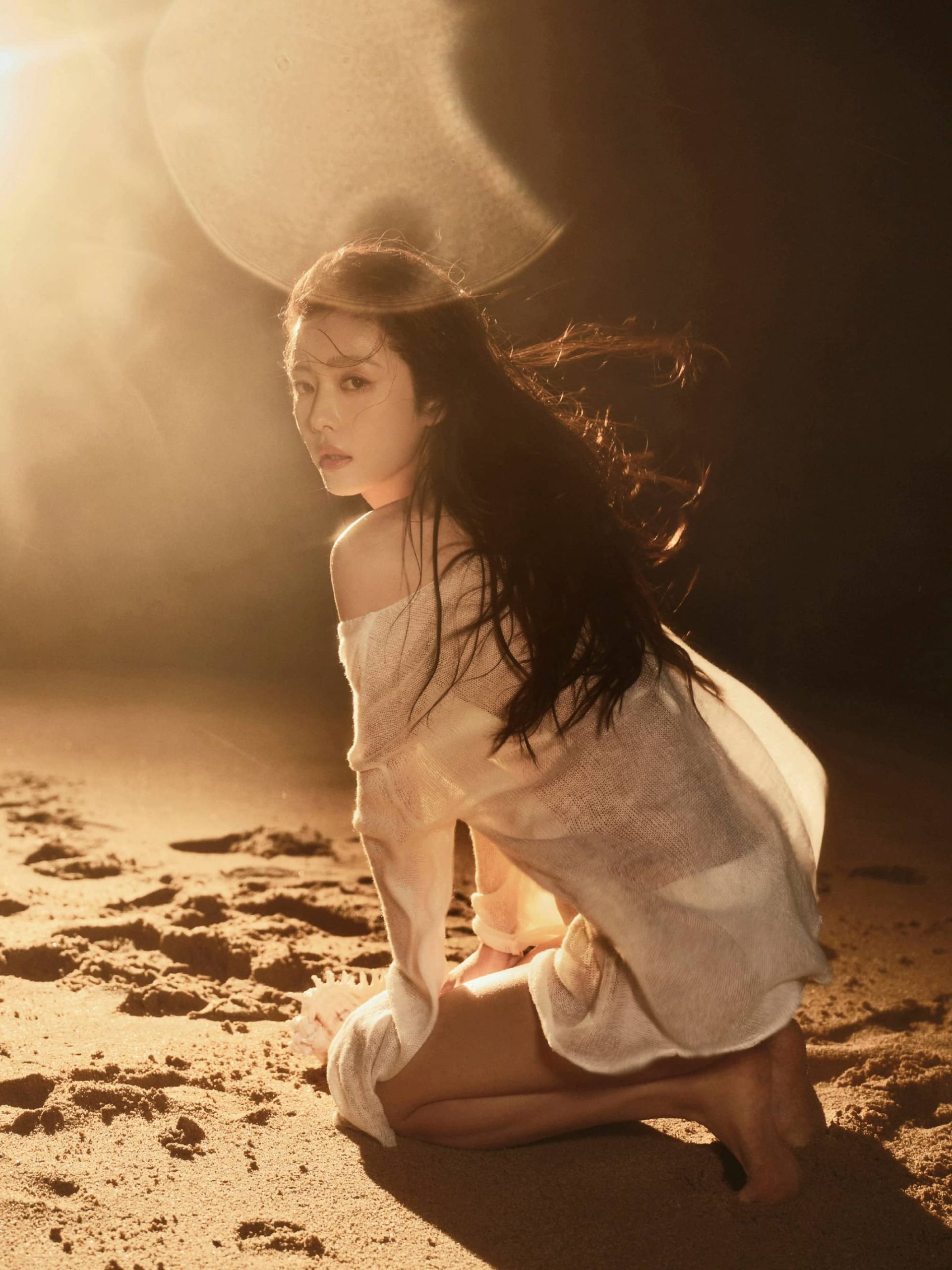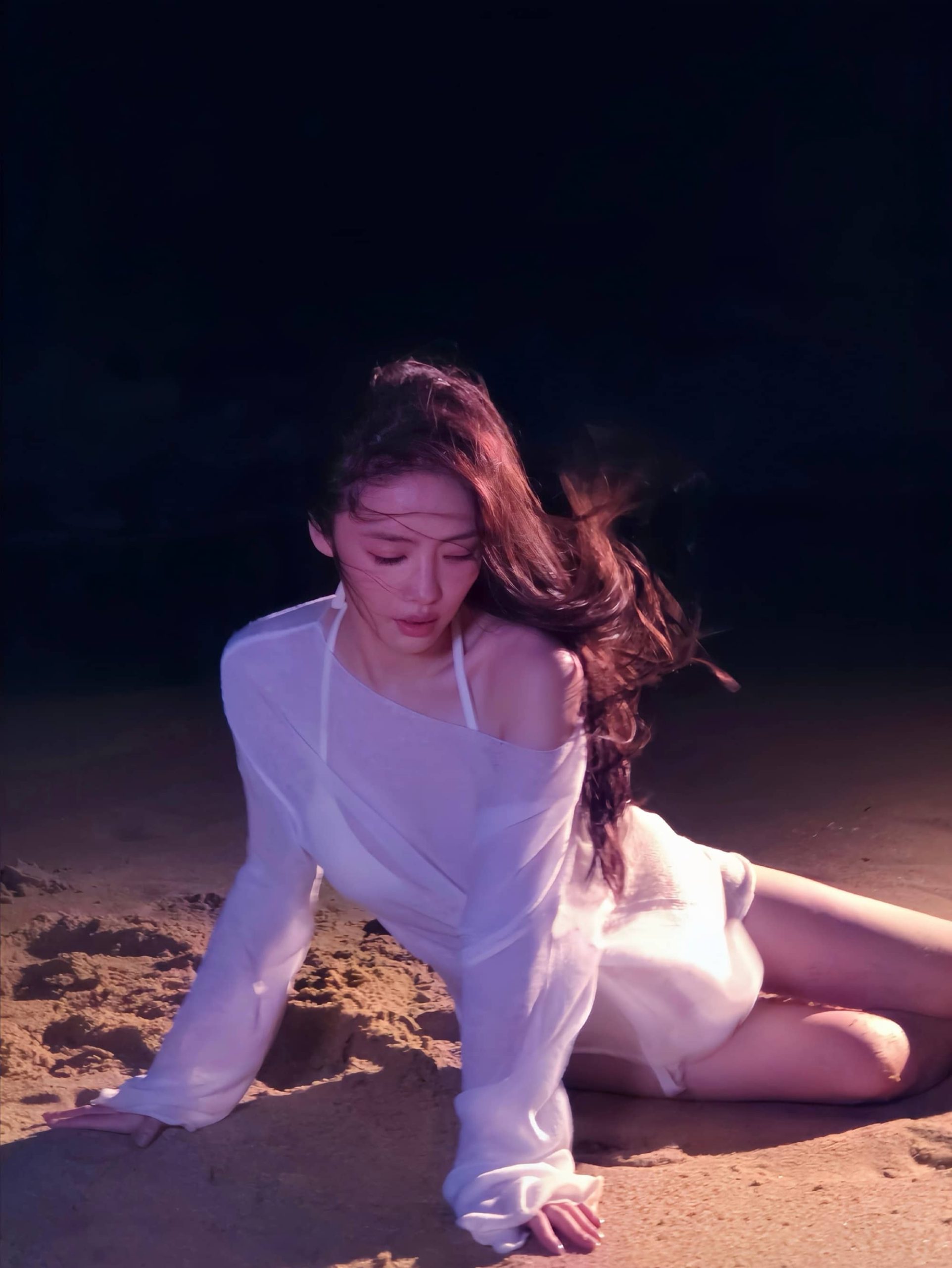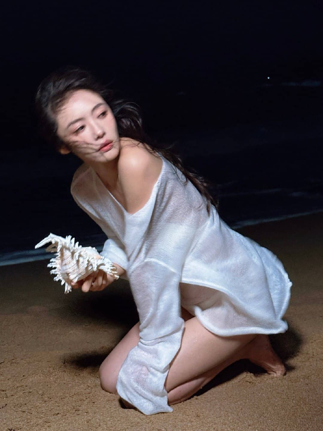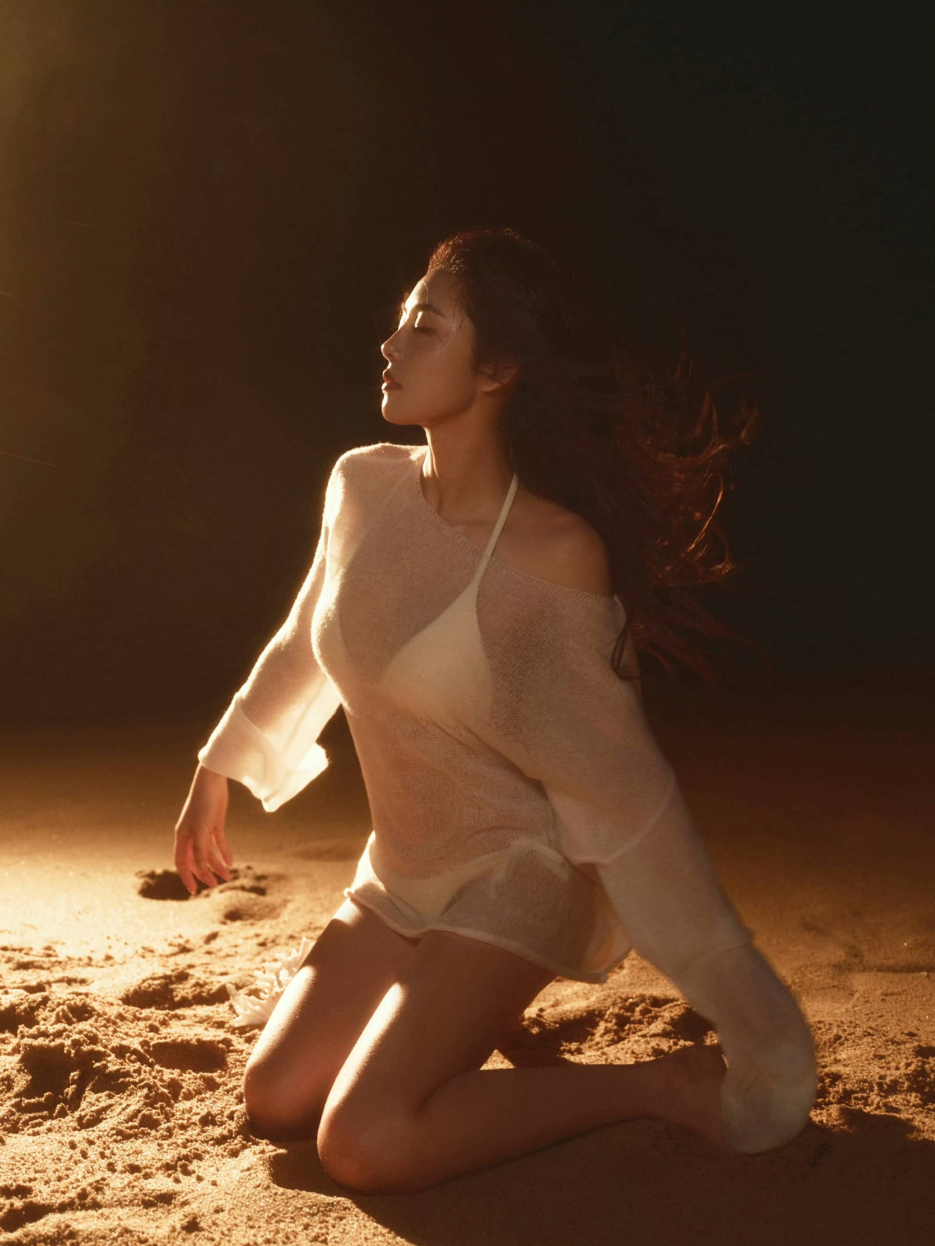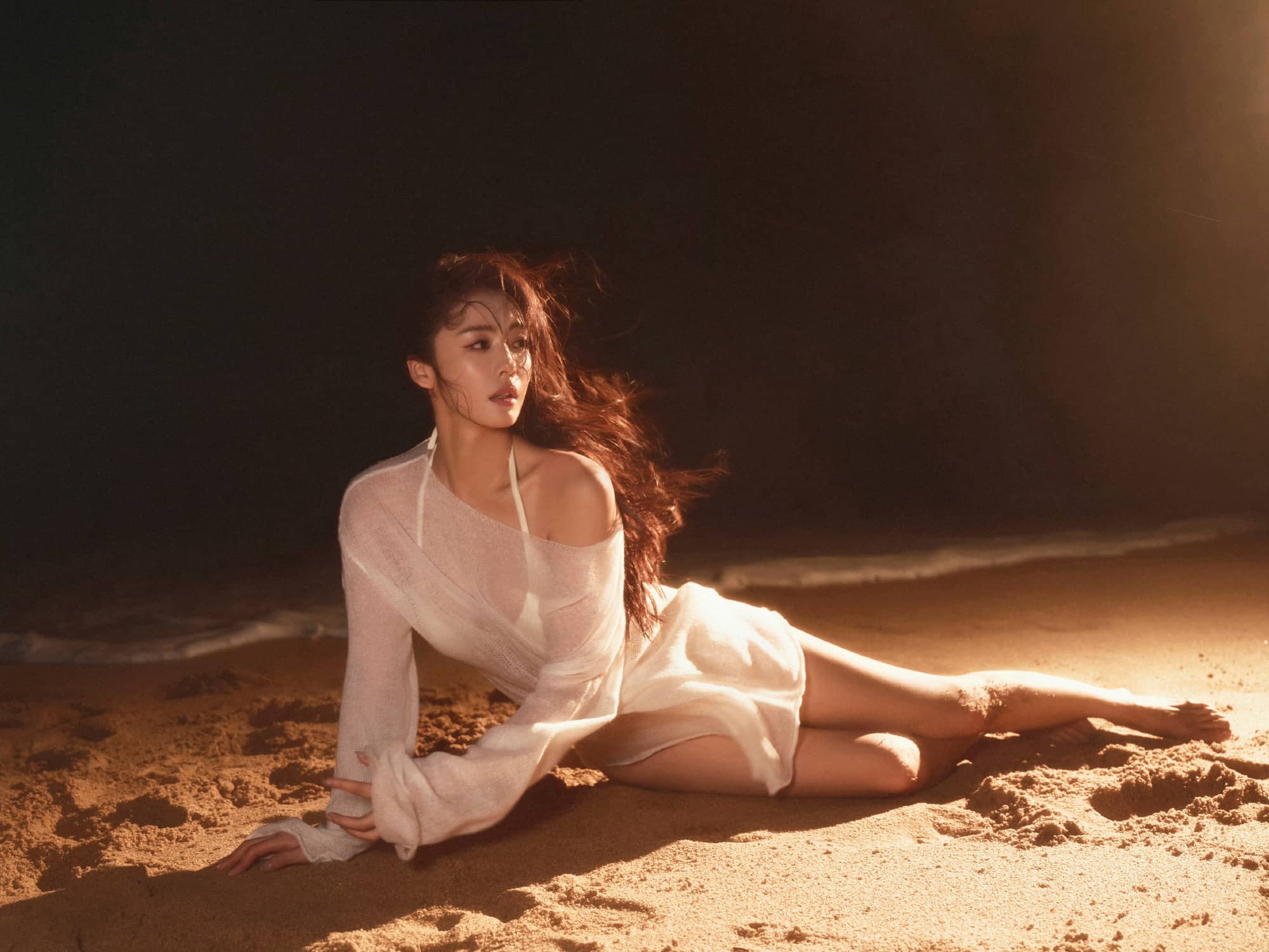 蔡文静,白色沙滩泳装,身材管理真好