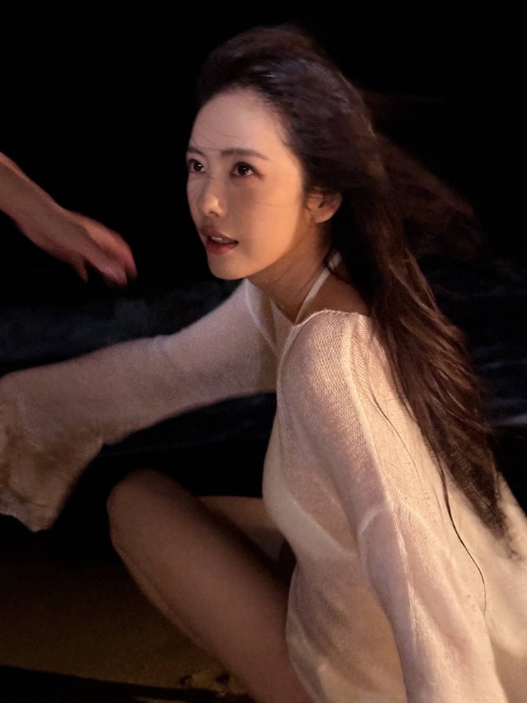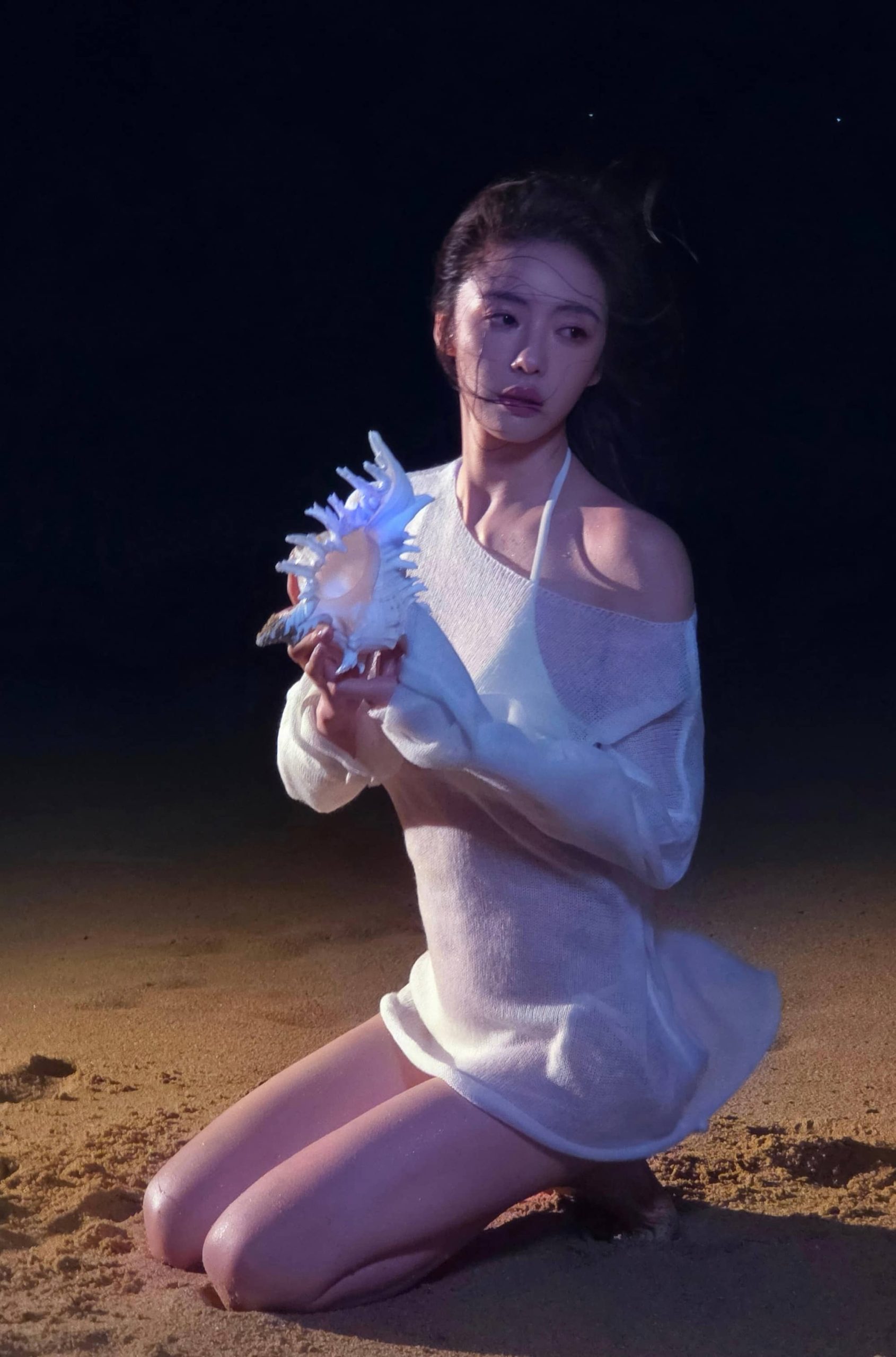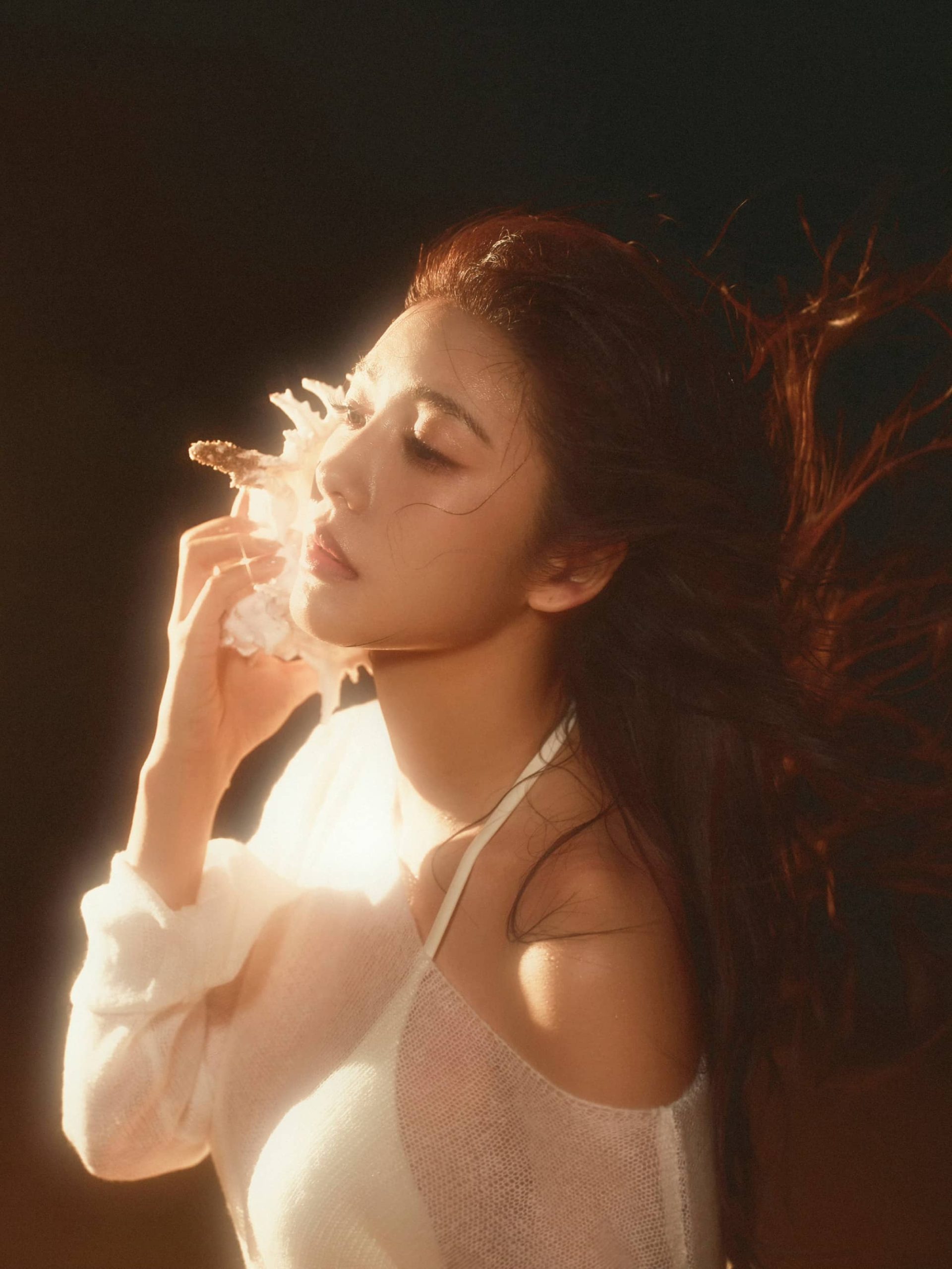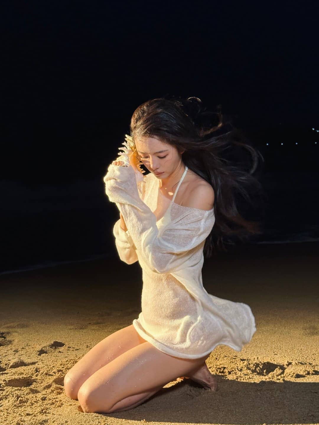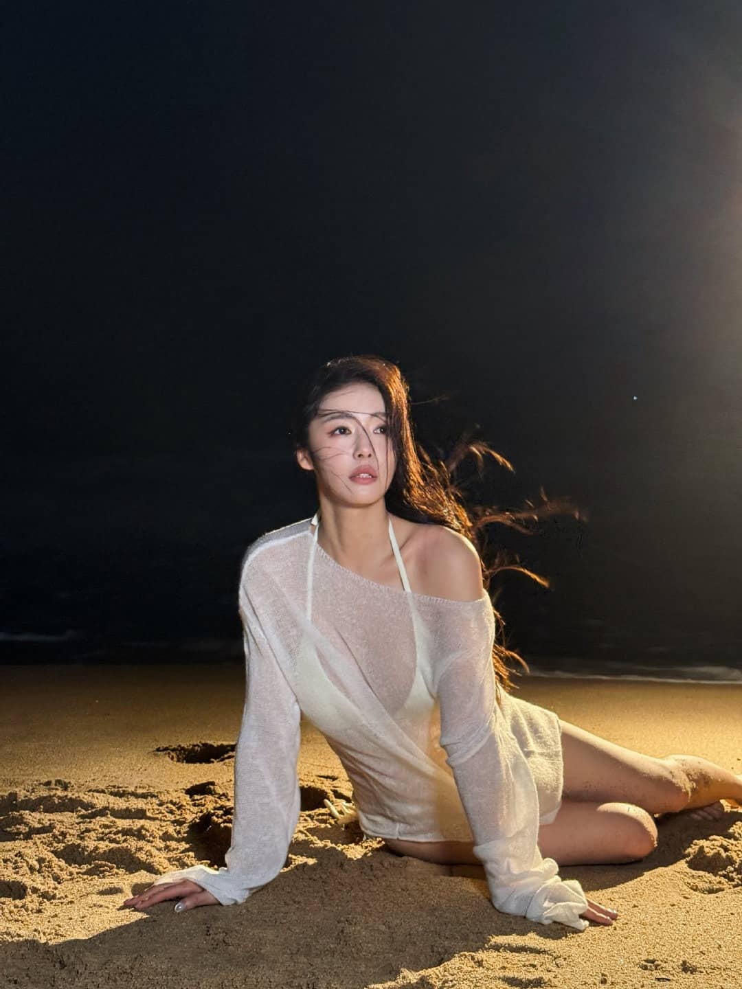 蔡文静,白色沙滩泳装,身材管理真好
