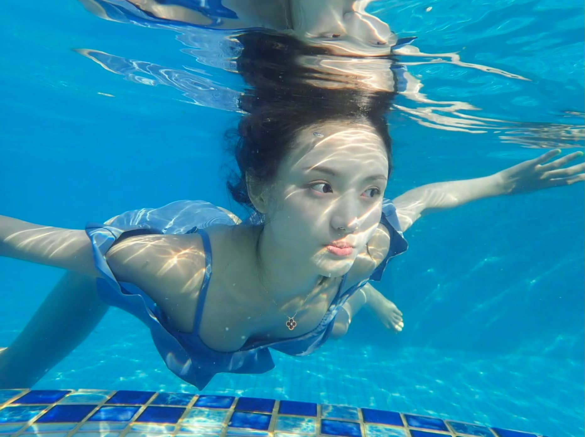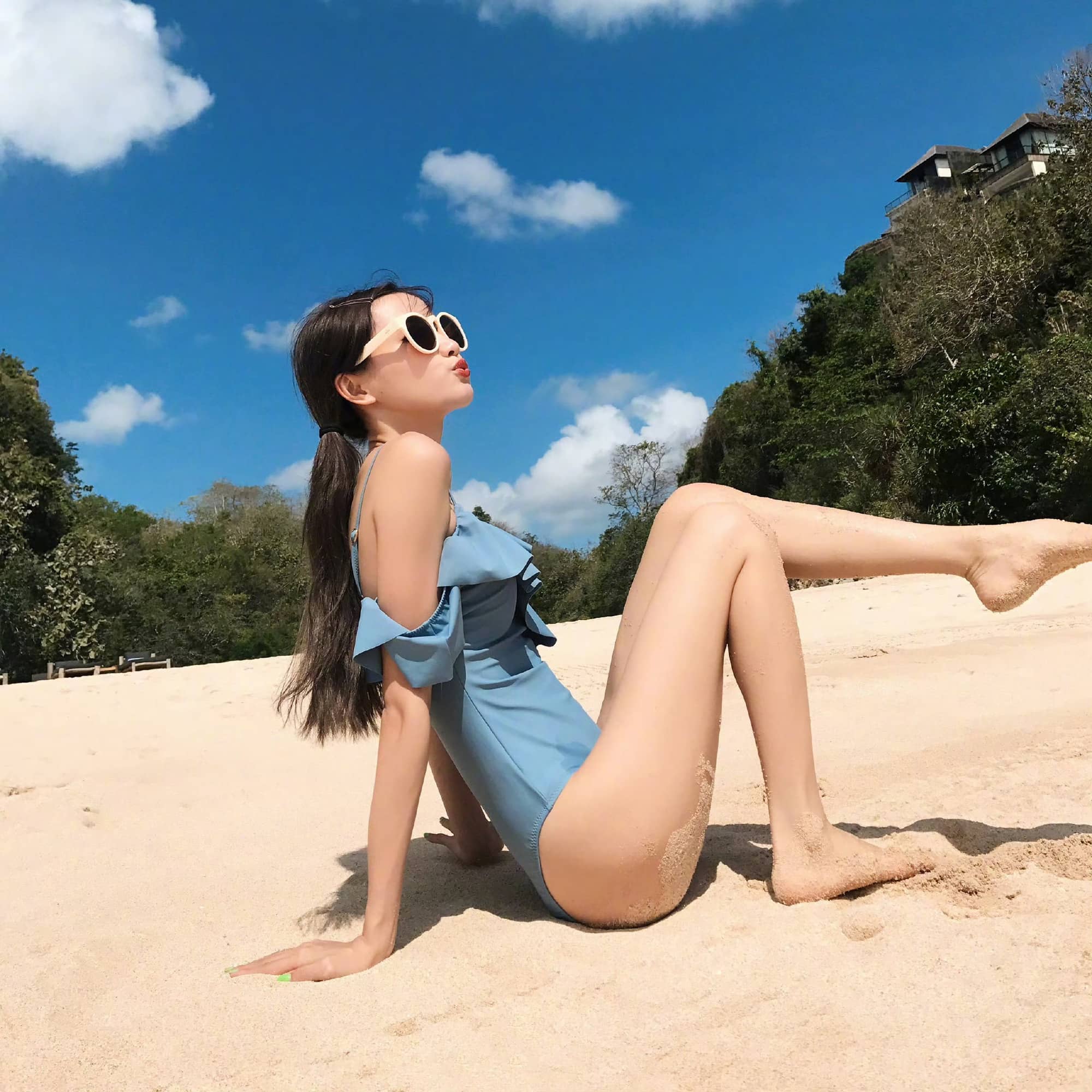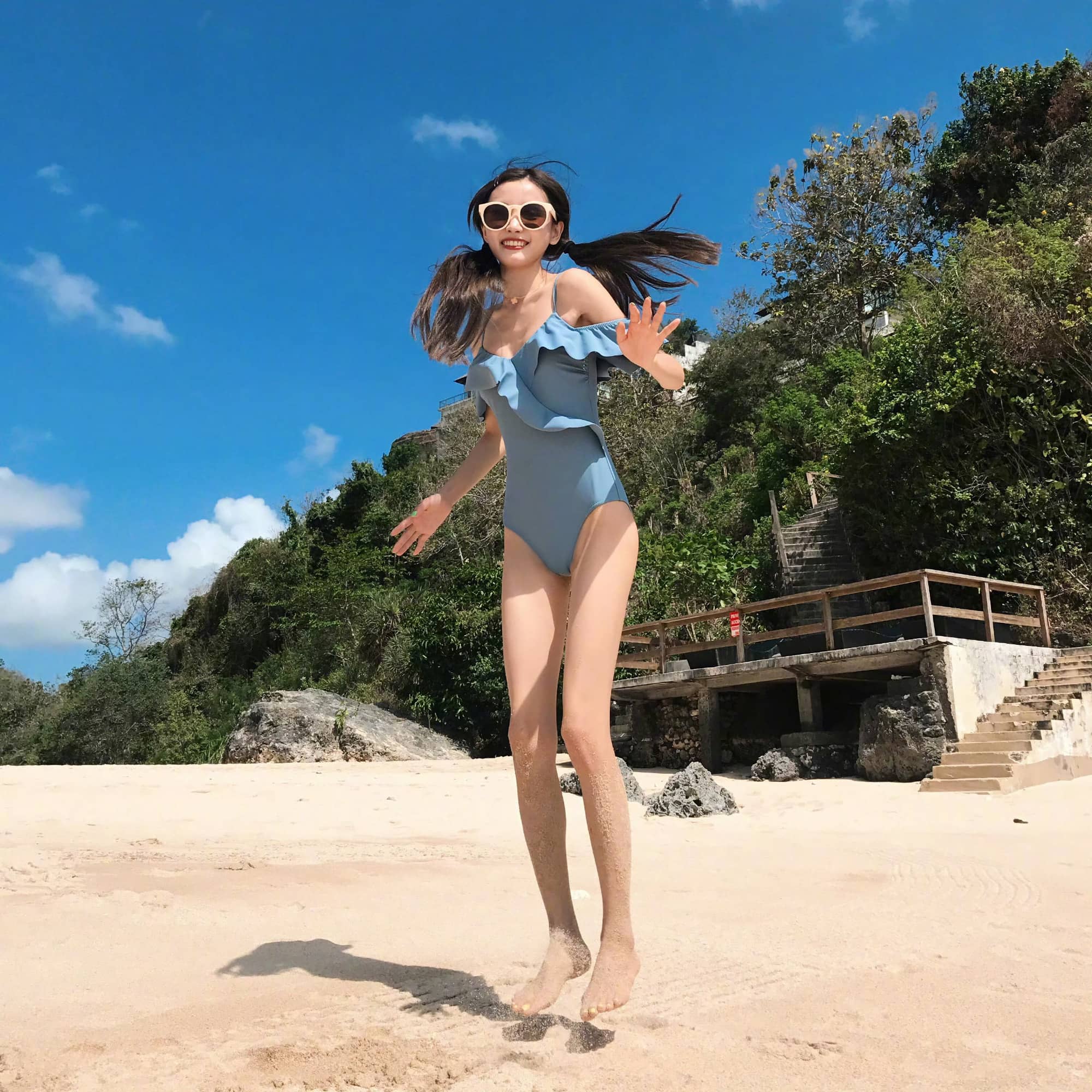 林小宅,蓝色泳装穿搭精选