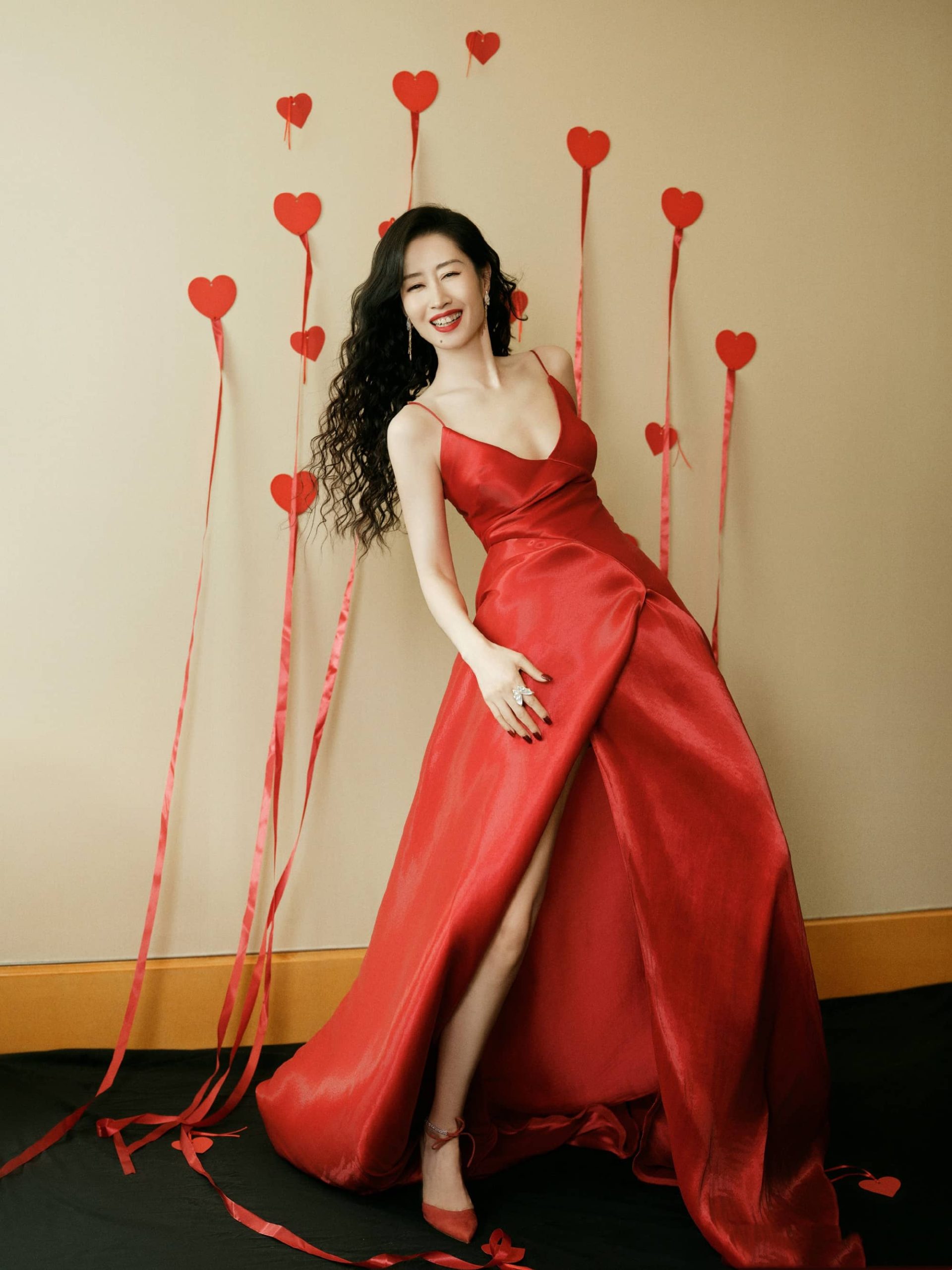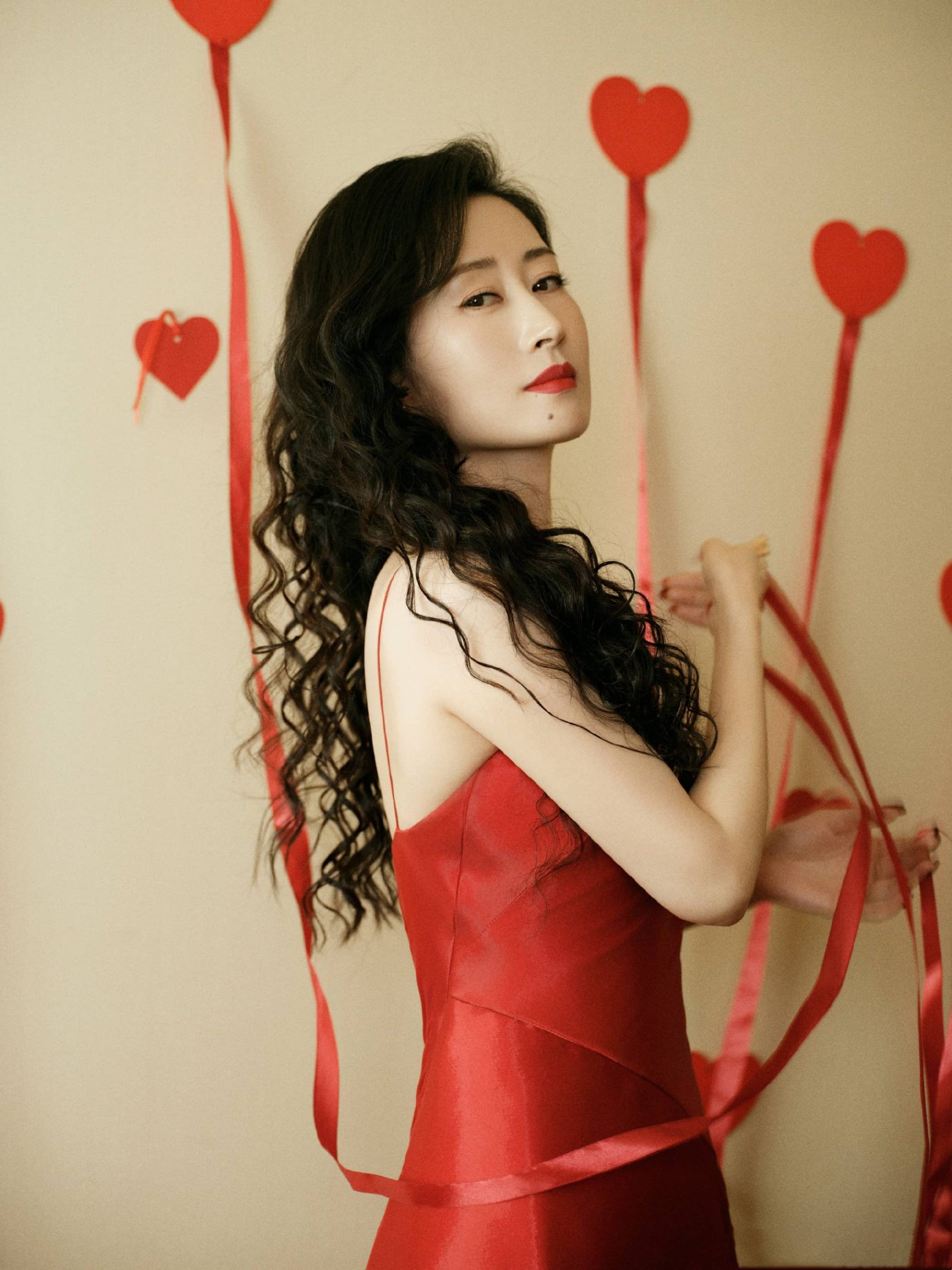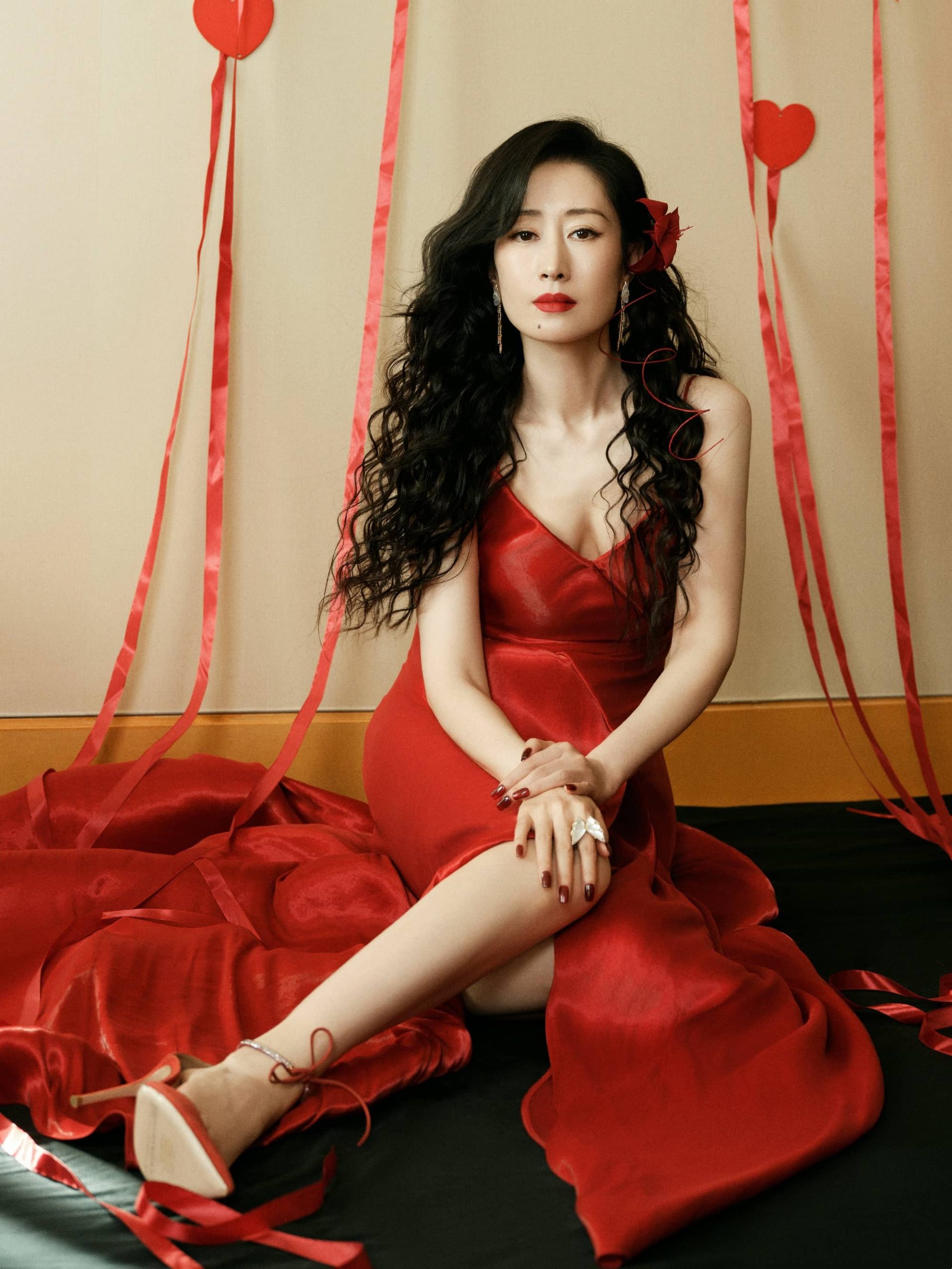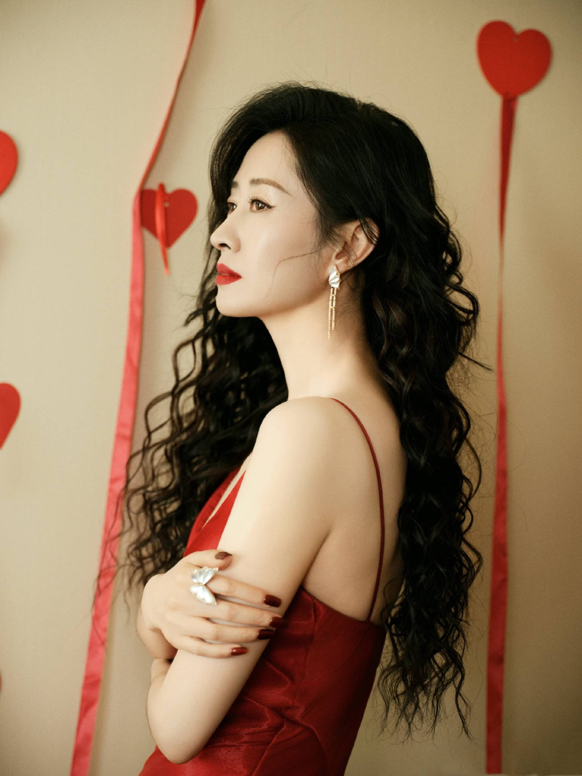 刘敏涛,卷发红裙大片,优雅曼妙的姿态