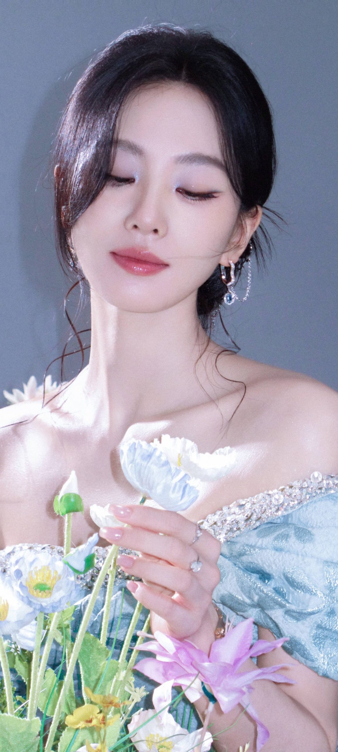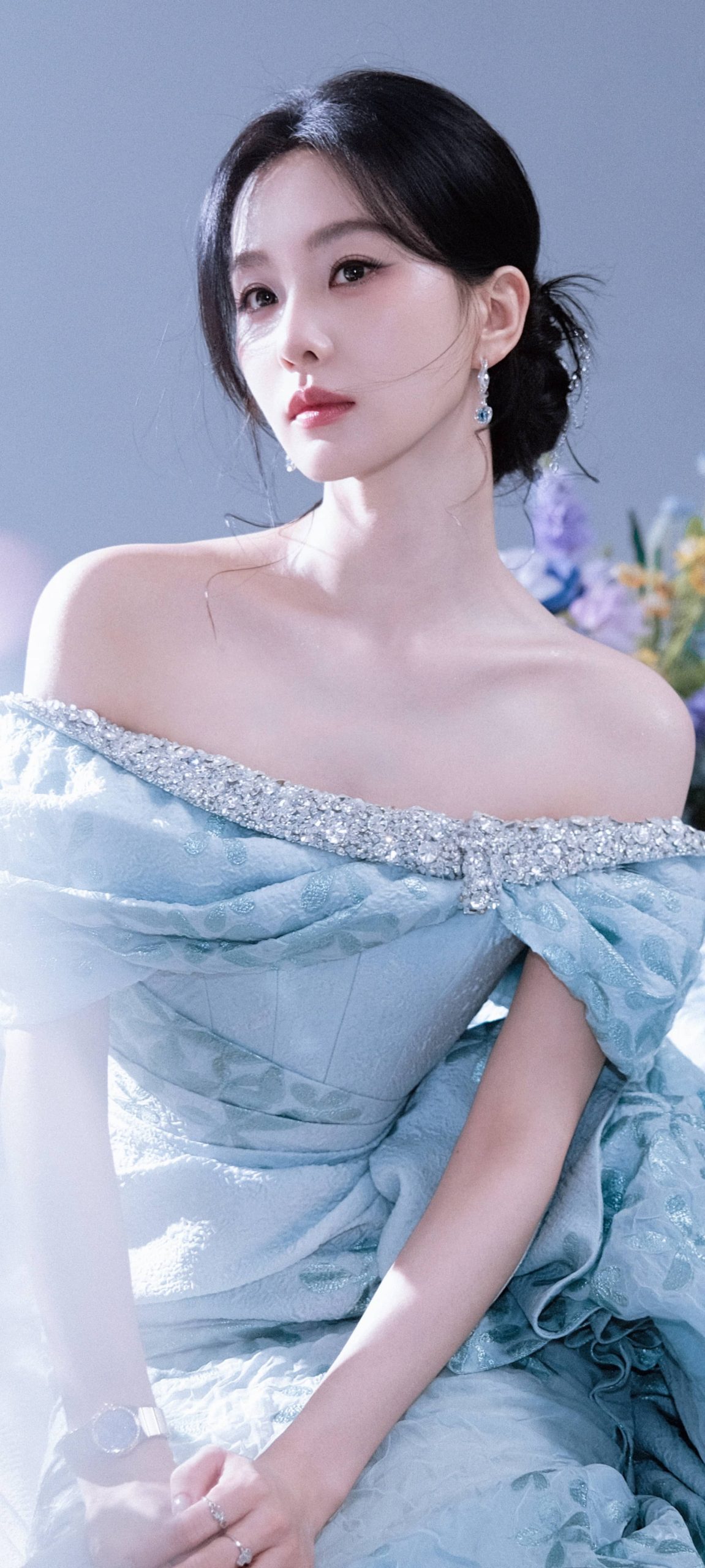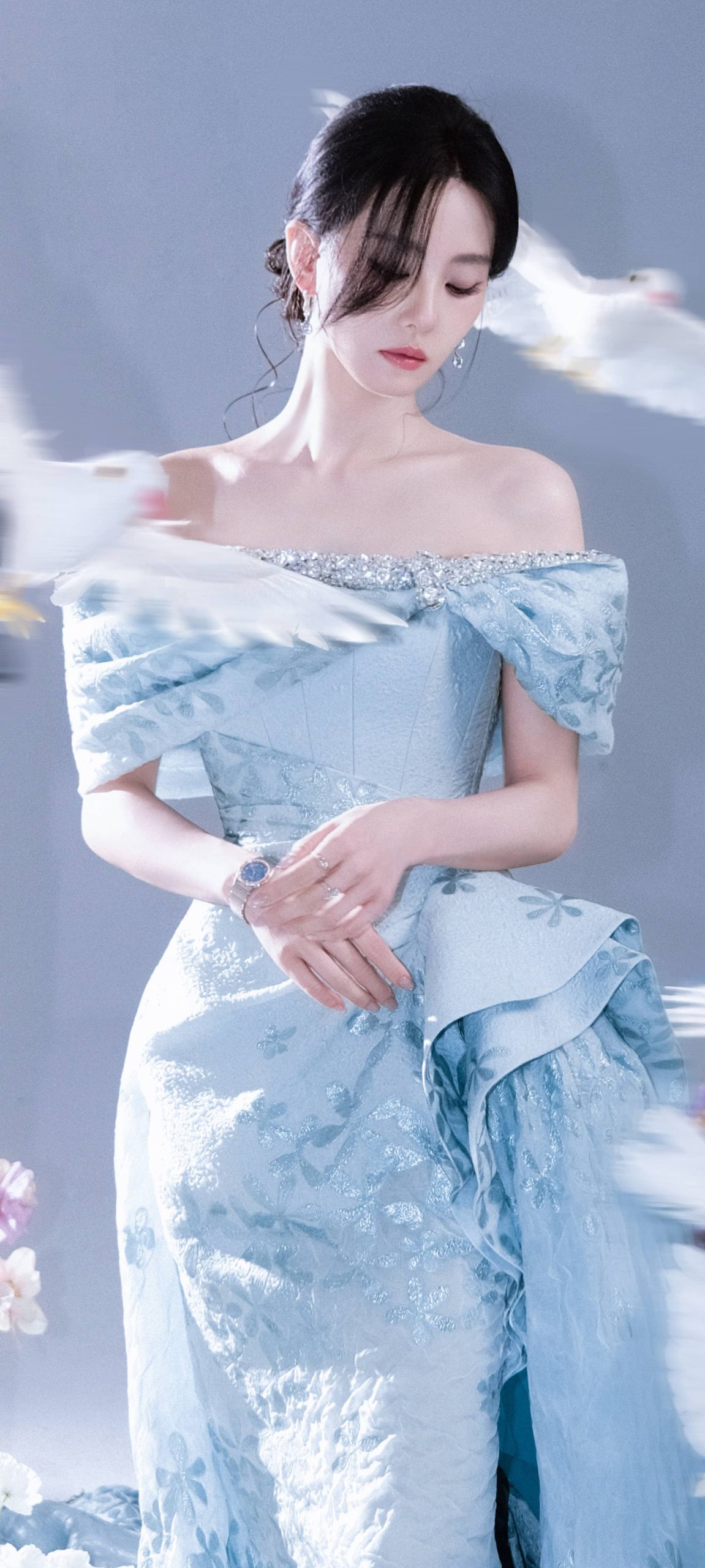 刘诗诗手机壁纸,蓝裙轻盈间的朦胧诗意