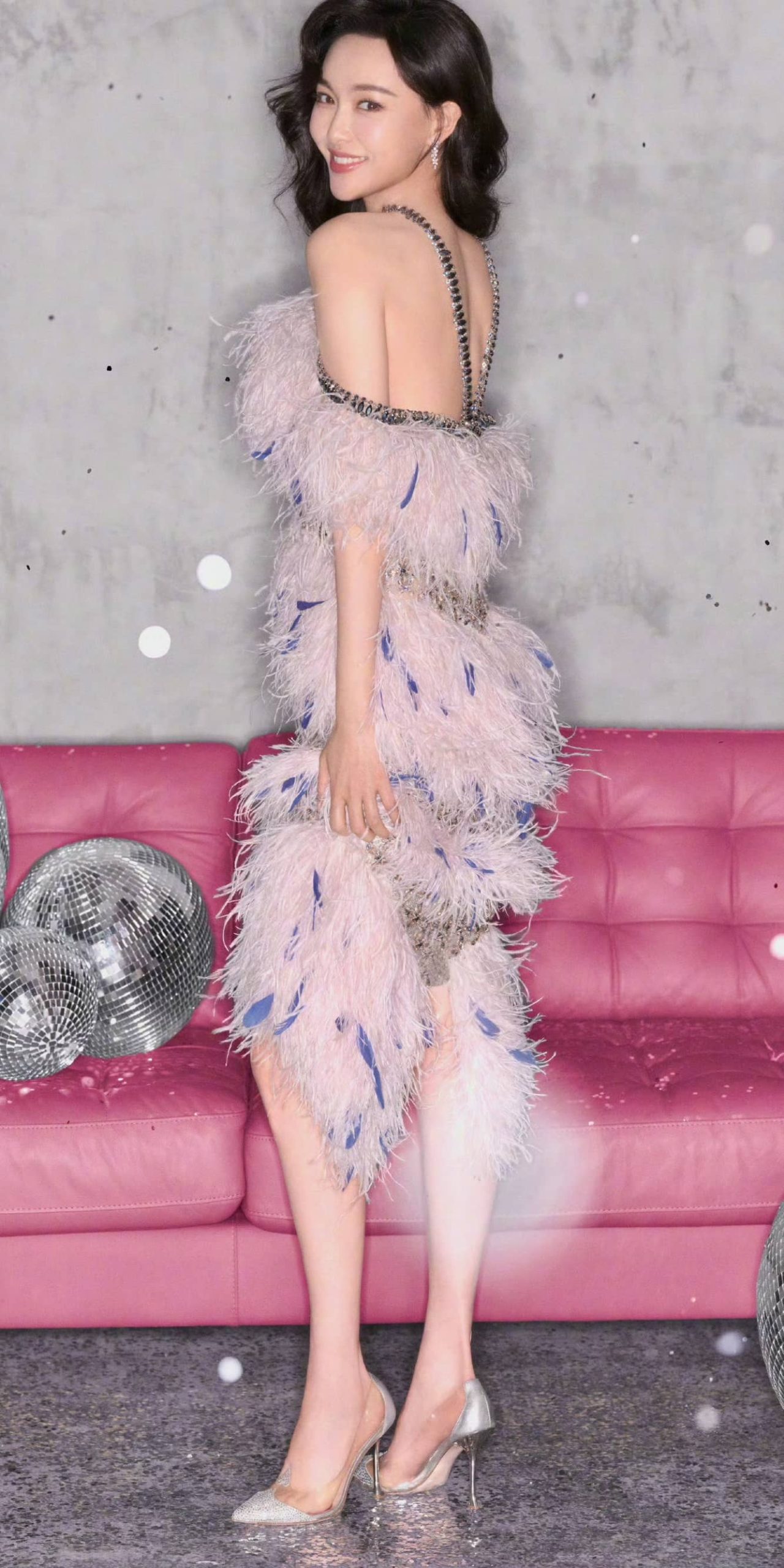 唐嫣公主羽毛裙,高跟大长腿,笑起来真甜