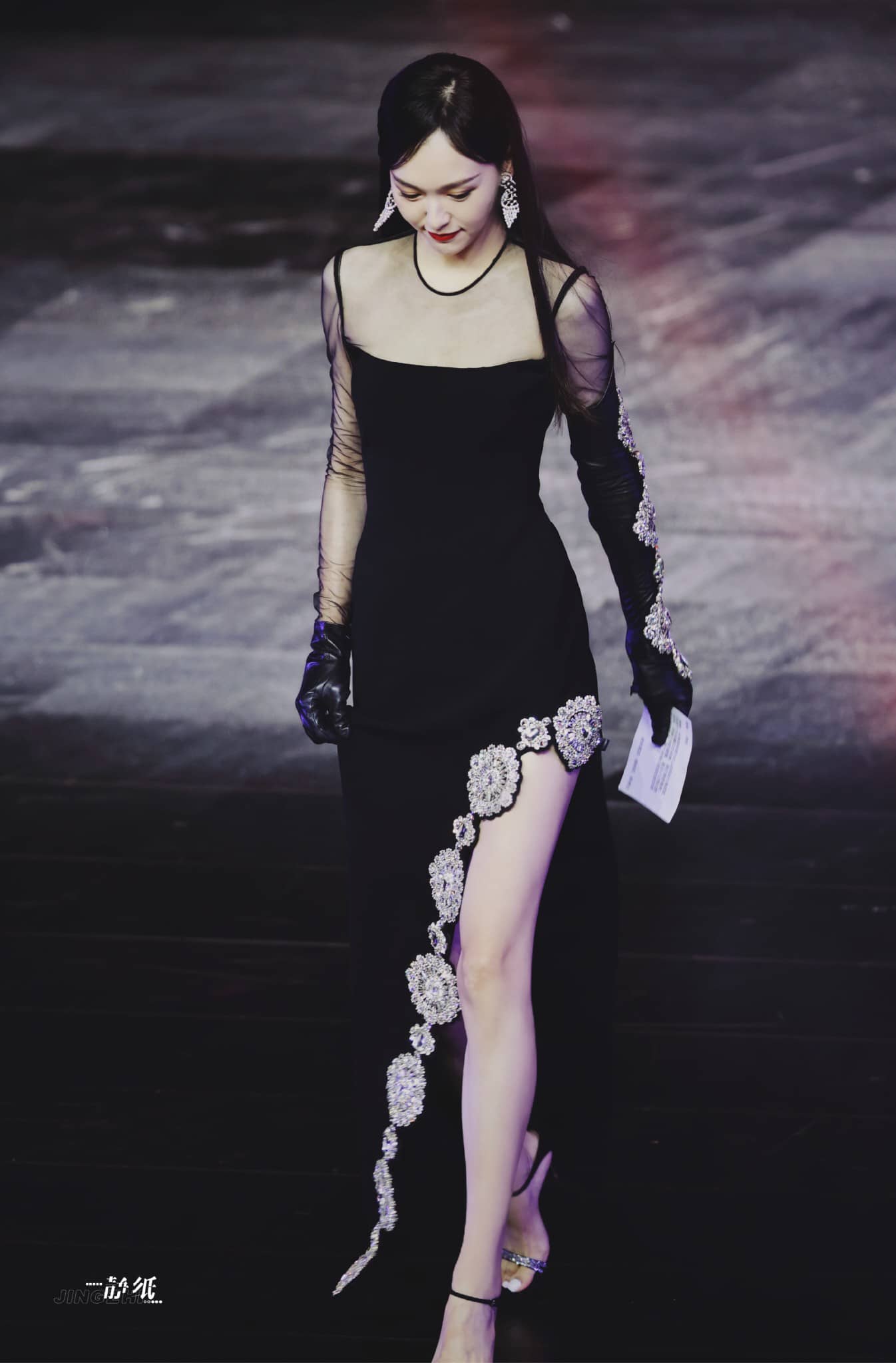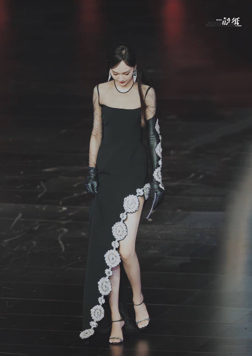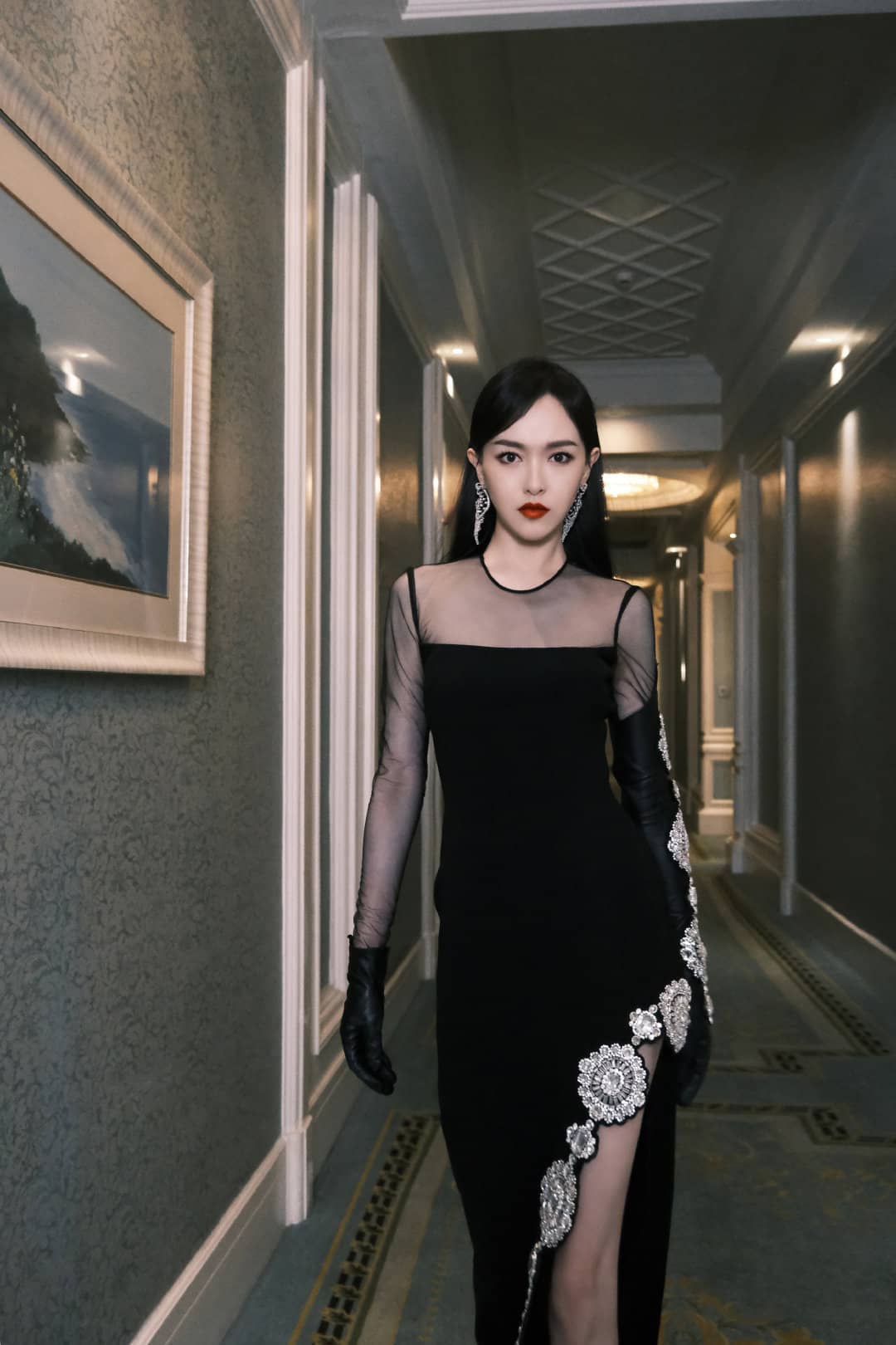 唐嫣裙装穿搭,红唇黑纱裙大长腿,这气场超级美