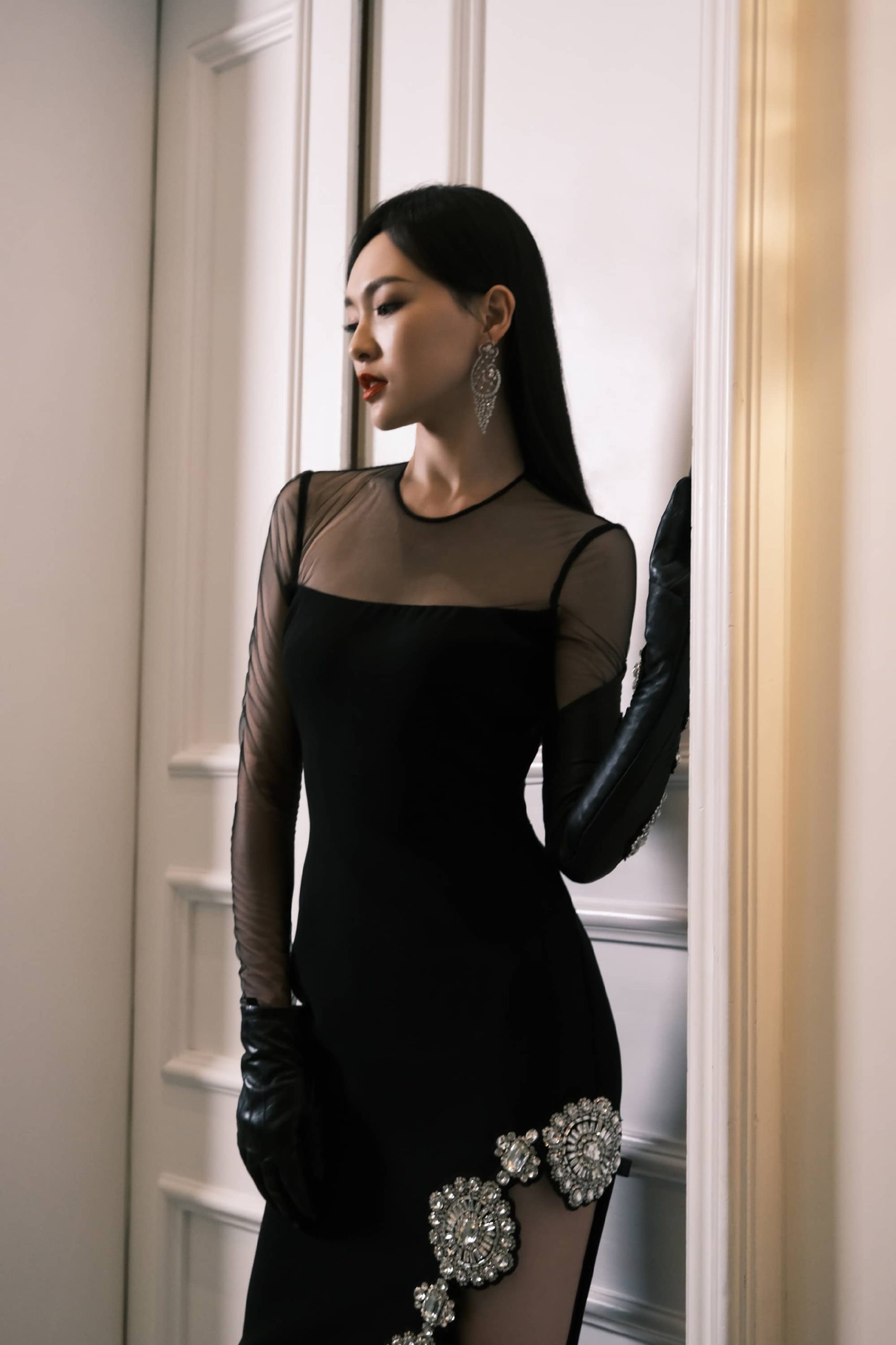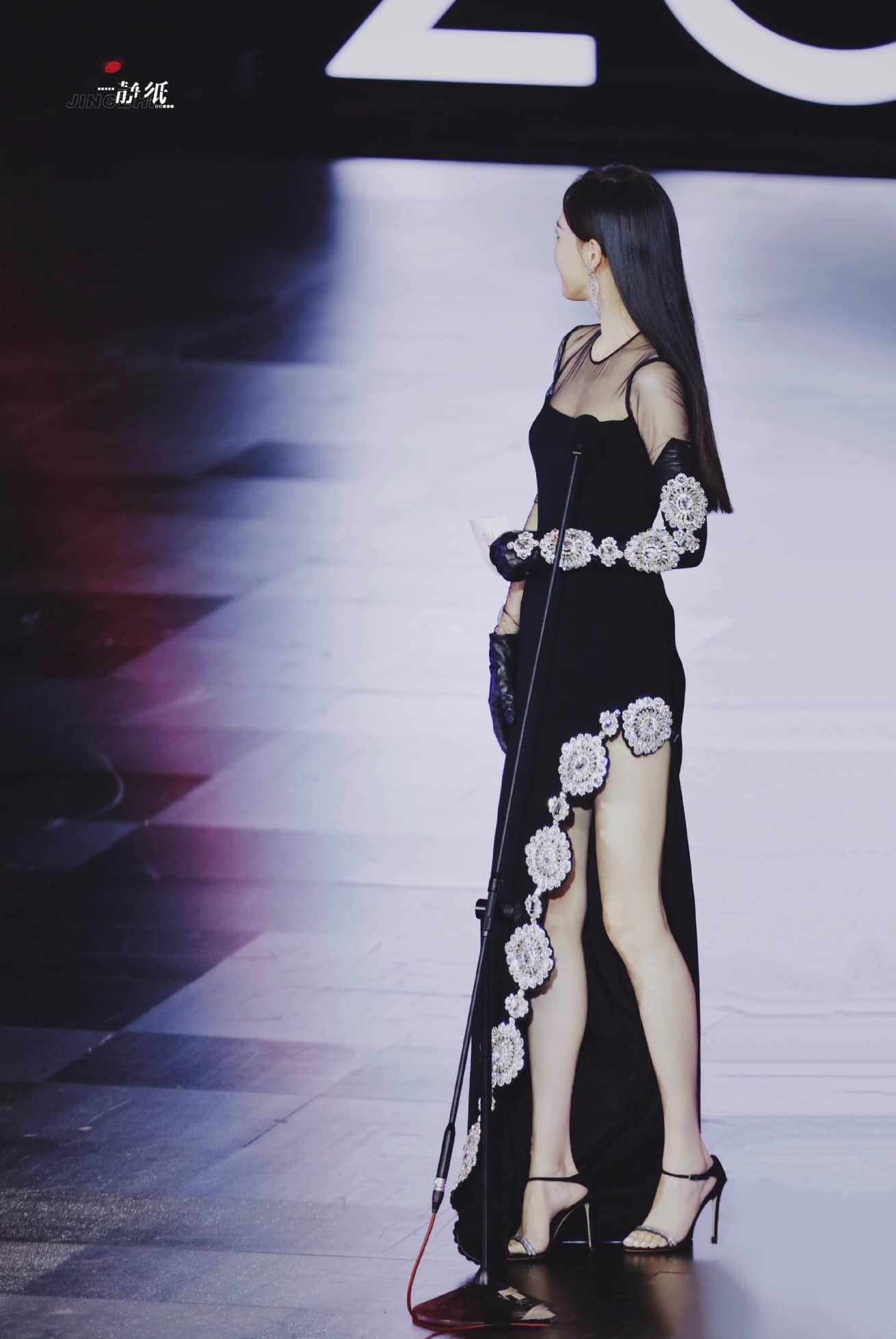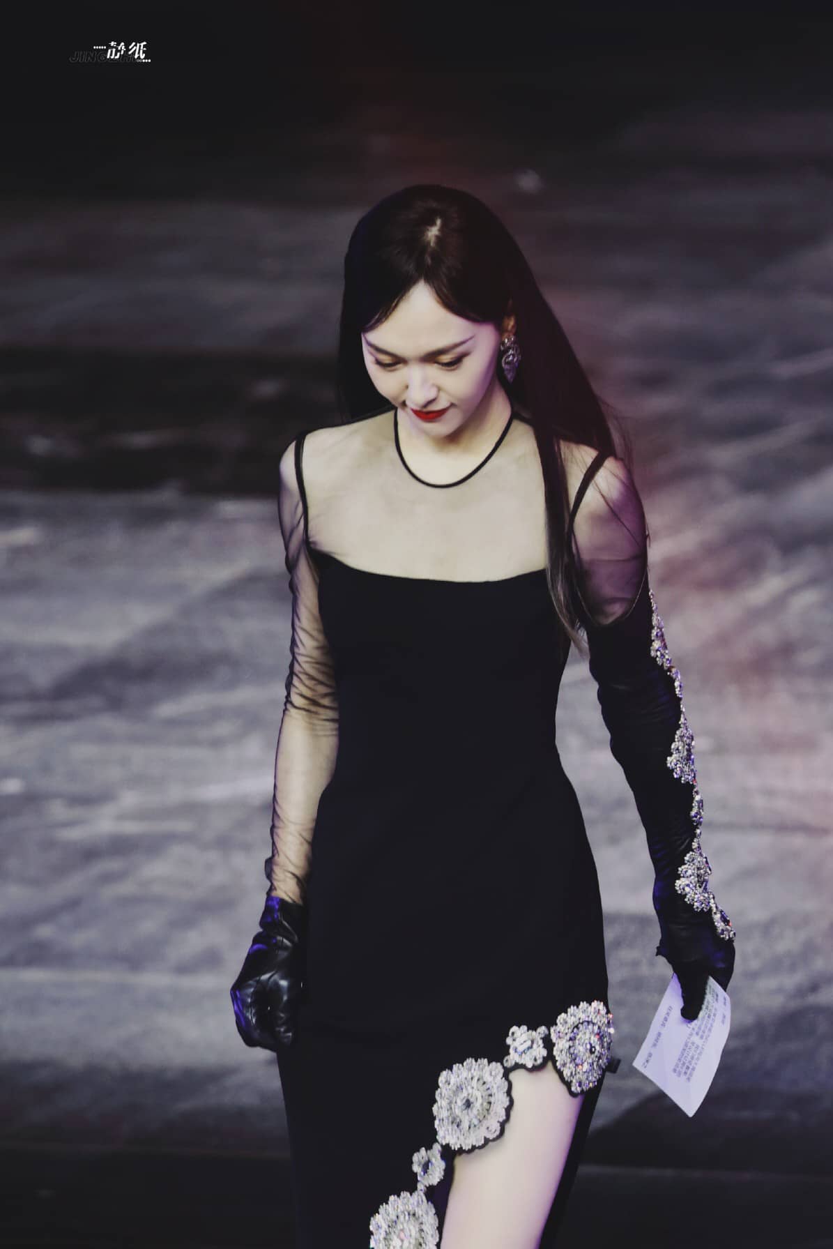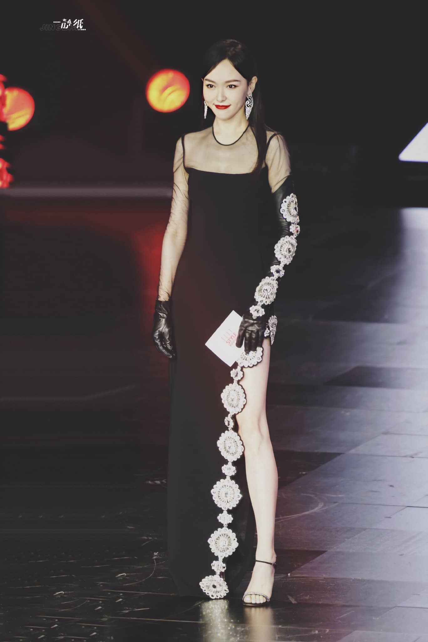 唐嫣裙装穿搭,红唇黑纱裙大长腿,这气场超级美