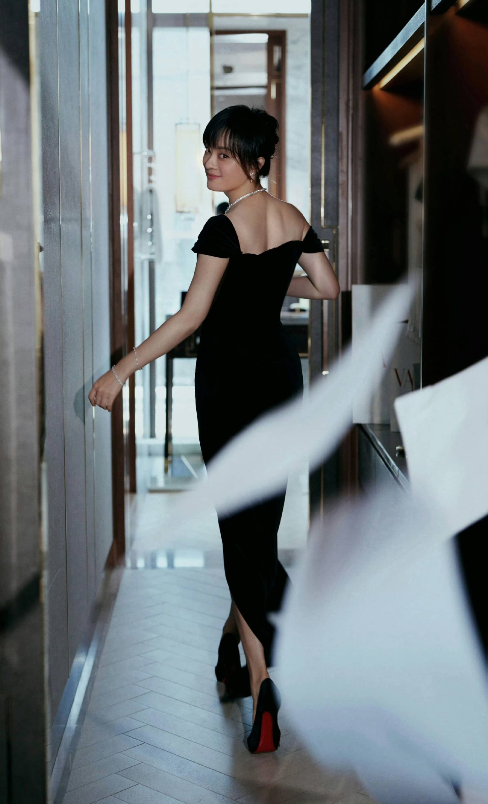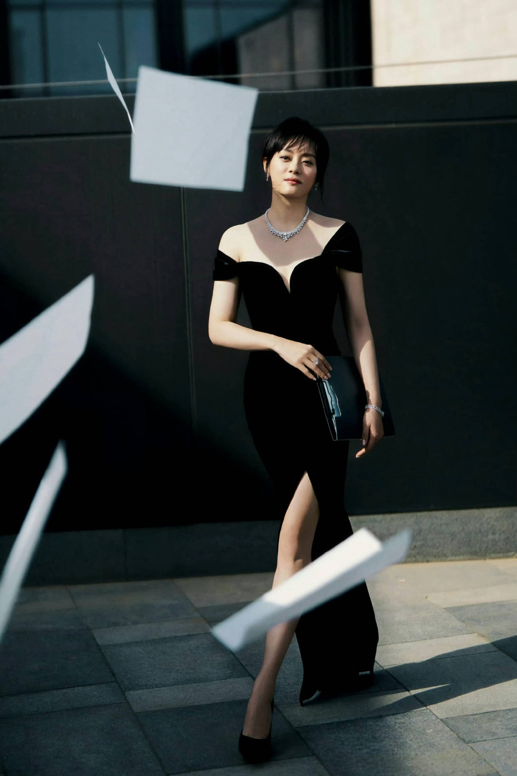 孙俪黑裙美腿穿搭,特别的静谧优雅
