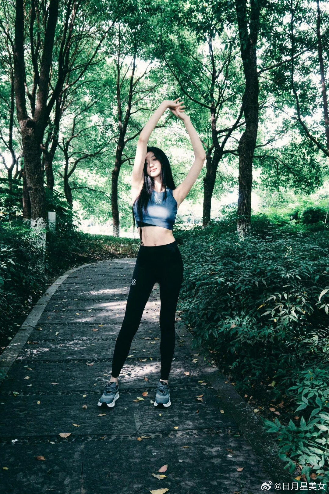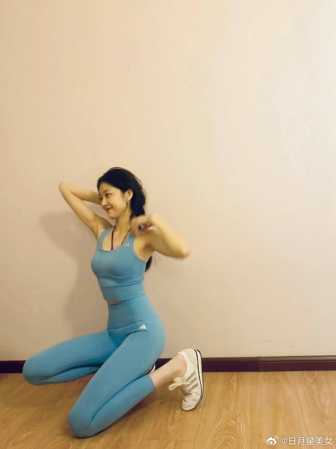 孙千瑜伽运动穿搭,大长腿好身材,活力满满