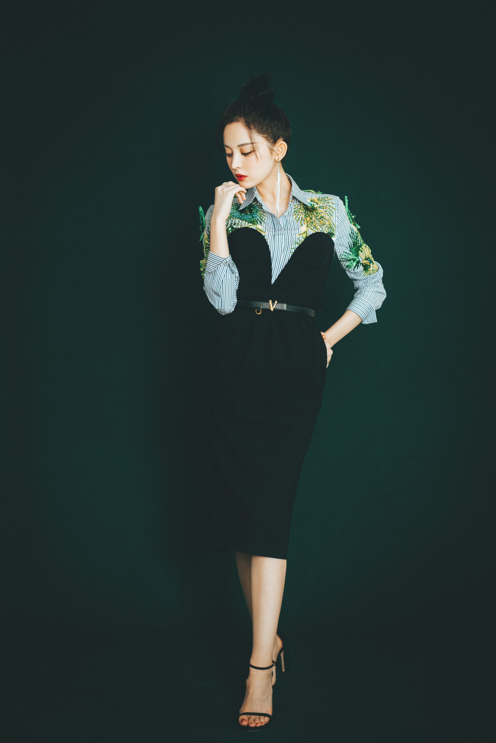 古力娜扎,黑色魅力穿搭,柔美大气
